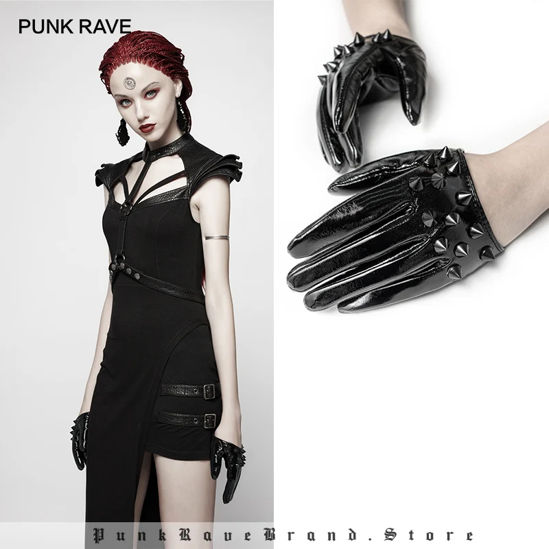 Женские перчатки в стиле панк Рейв с полупальмовыми заклепками, Красивые перчатки из искусственной кожи для вечеринки, клуба, женские перчатки, аксессуары
