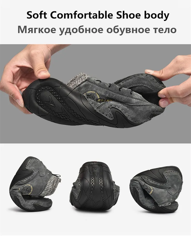 Мужские кожаные ботинки из коровьей замши, модные теплые зимние ботинки, водонепроницаемая зимняя обувь, кожаные мужские ботильоны, Мужская Рабочая обувь с мехом