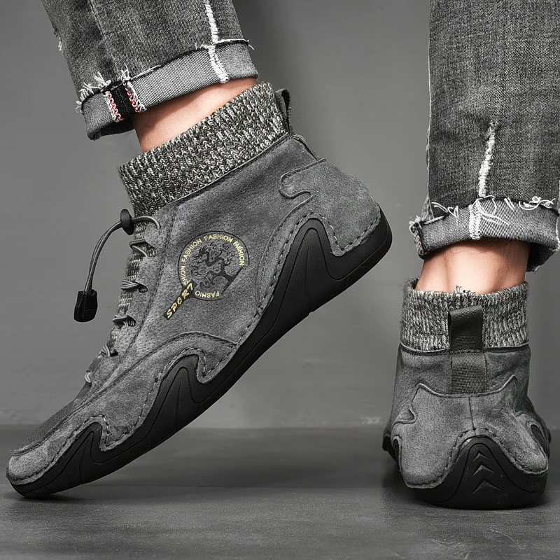 Ботинки-носки мужские зимние, теплые плюшевые ботильоны, рабочая об...