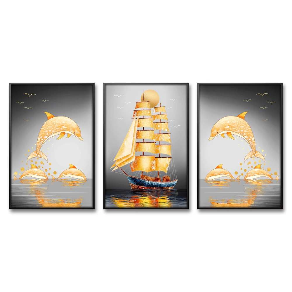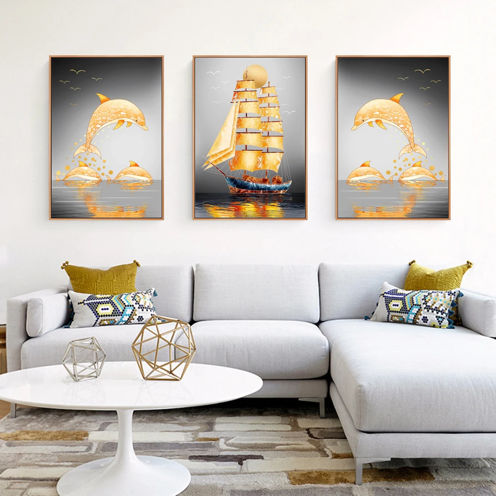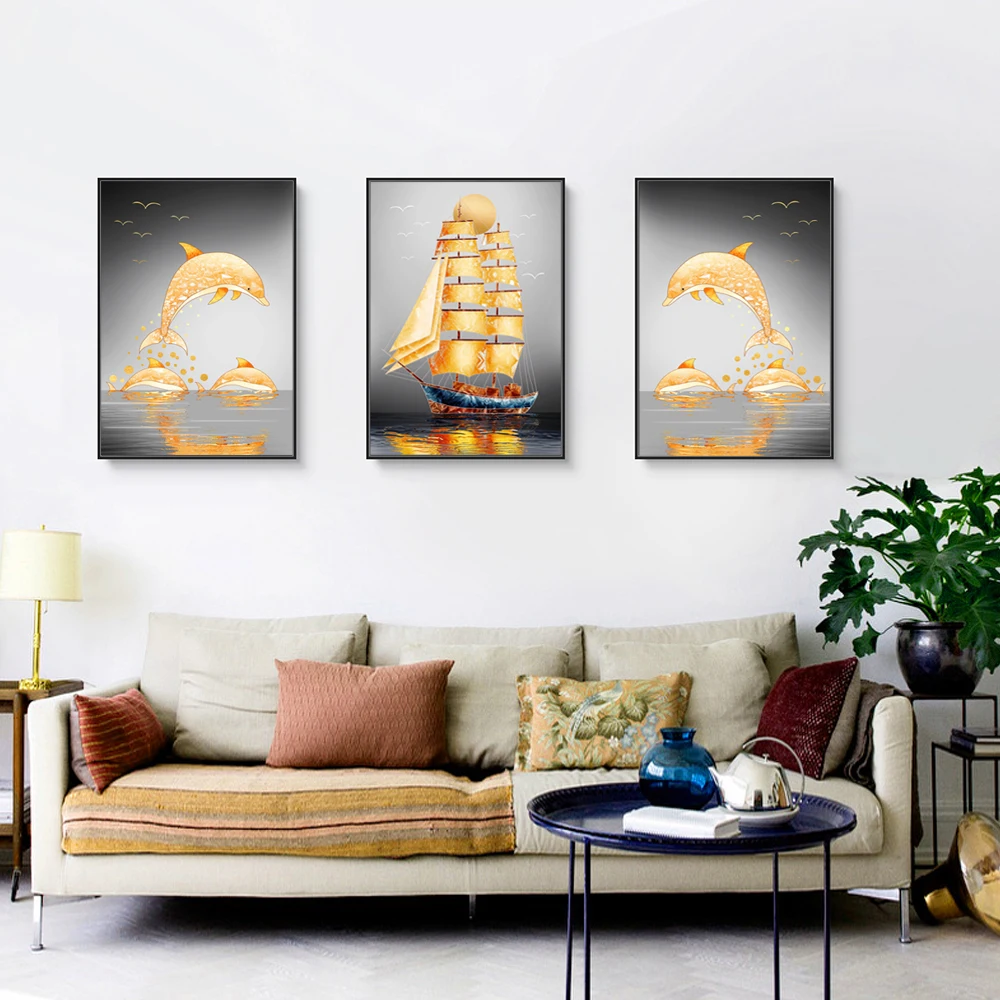 Золотая картина для домашнего декора, холст, настенное искусство, с...