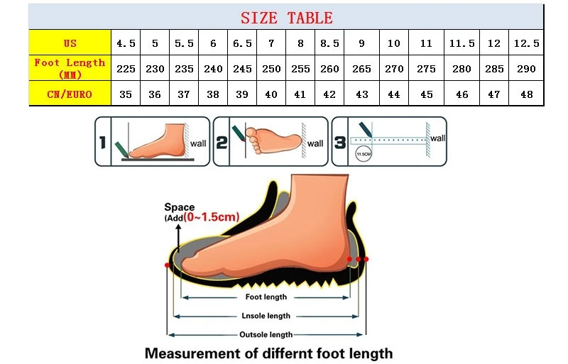 1) Если у вас полная и широкая стопа, мы рекомендуем вам выбрать на один размер больше!2) Если вы не знаете, как выбрать,Сообщите нам длину вашей стопы.Любой вопрос,Пожалуйста, сначала свяжитесь с нами, Мы постараемся сделать все возможное, чтобы решить проблему.