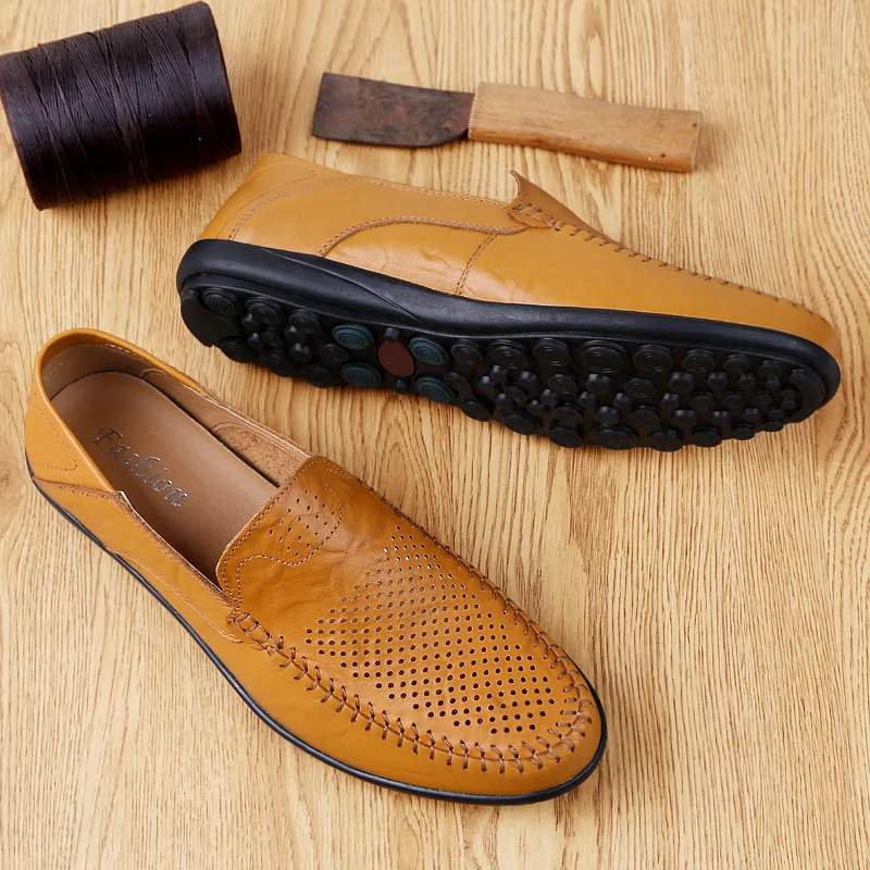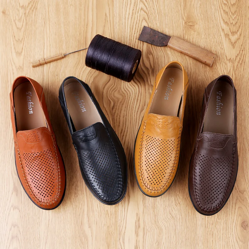 Мужские повседневные туфли из натуральной кожи, брендовые дышащие л...