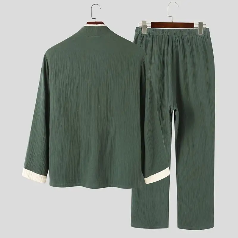 INCERUN мужские лоскутные пижамные костюмы с длинным рукавом и v-образным вырезом Топы Эластичные Брюки домашние наборы хлопковая ночная рубашка с пуговицами костюмы размера плюс