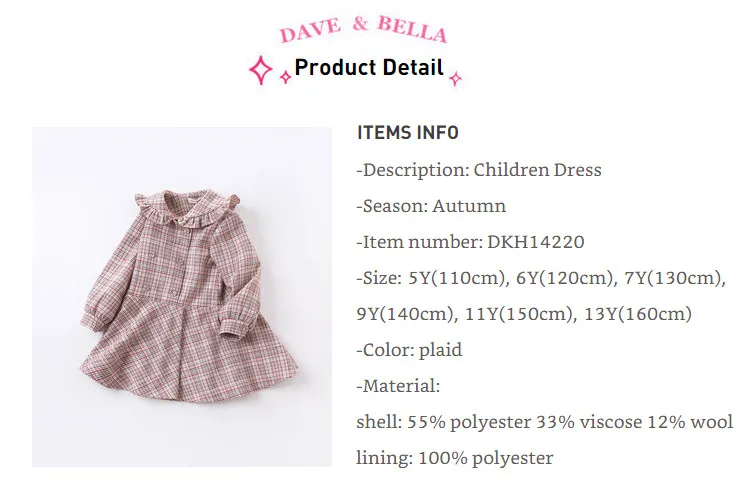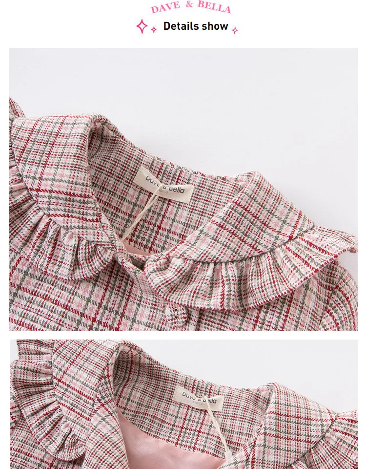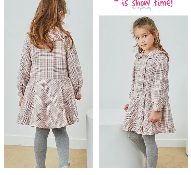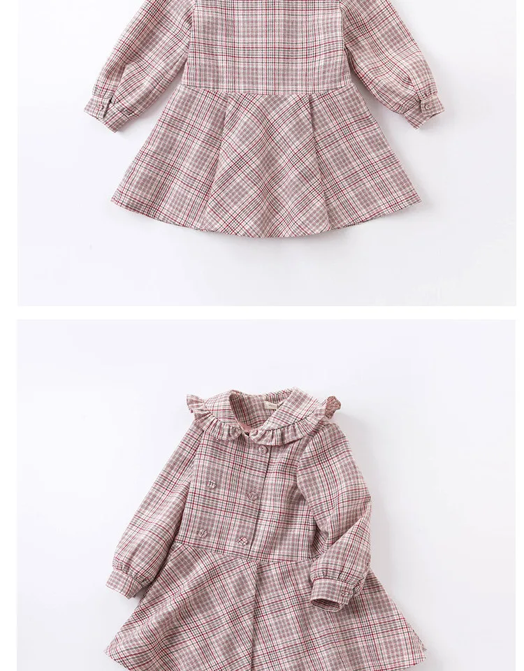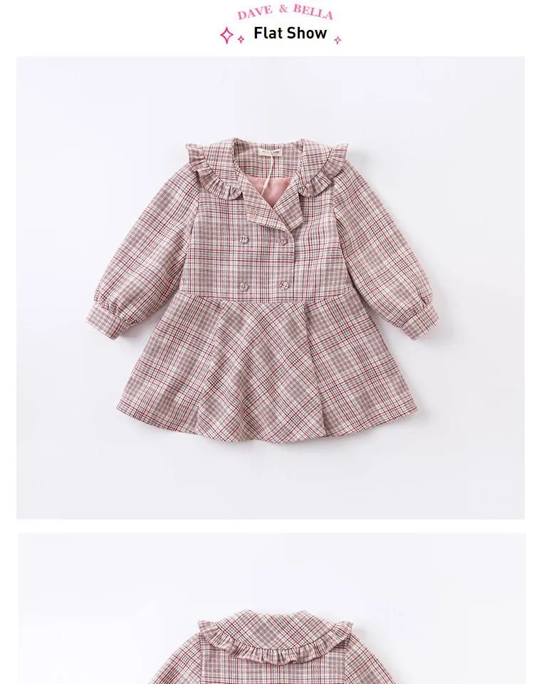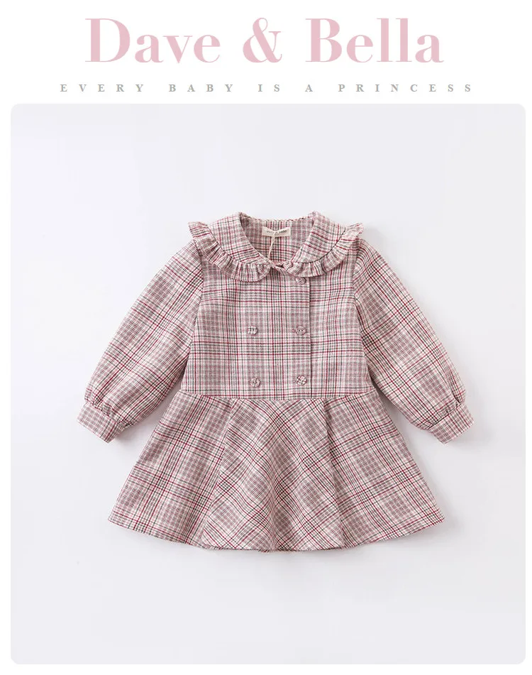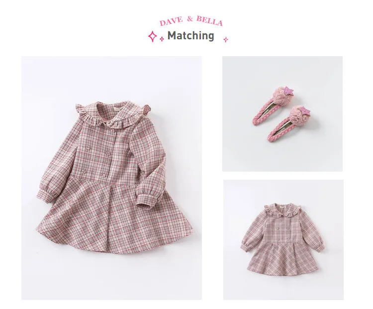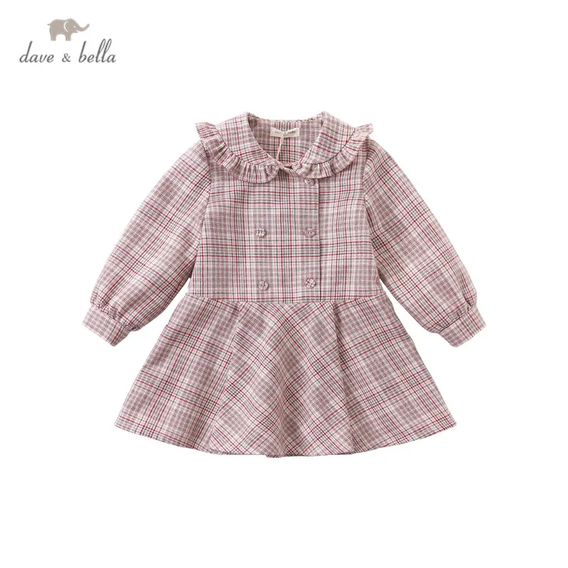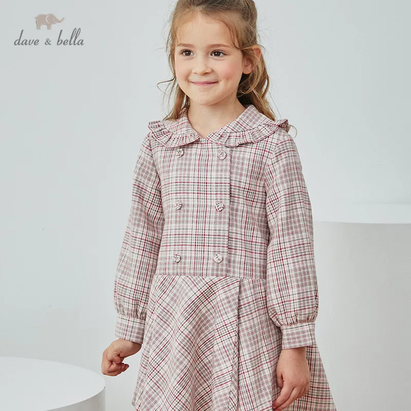 DKH14220 dave bellaосеннее модное драпированное платье в клетку с принтом на пуговицах для девочек детское милое платье детская одежда в стиле Лолиты