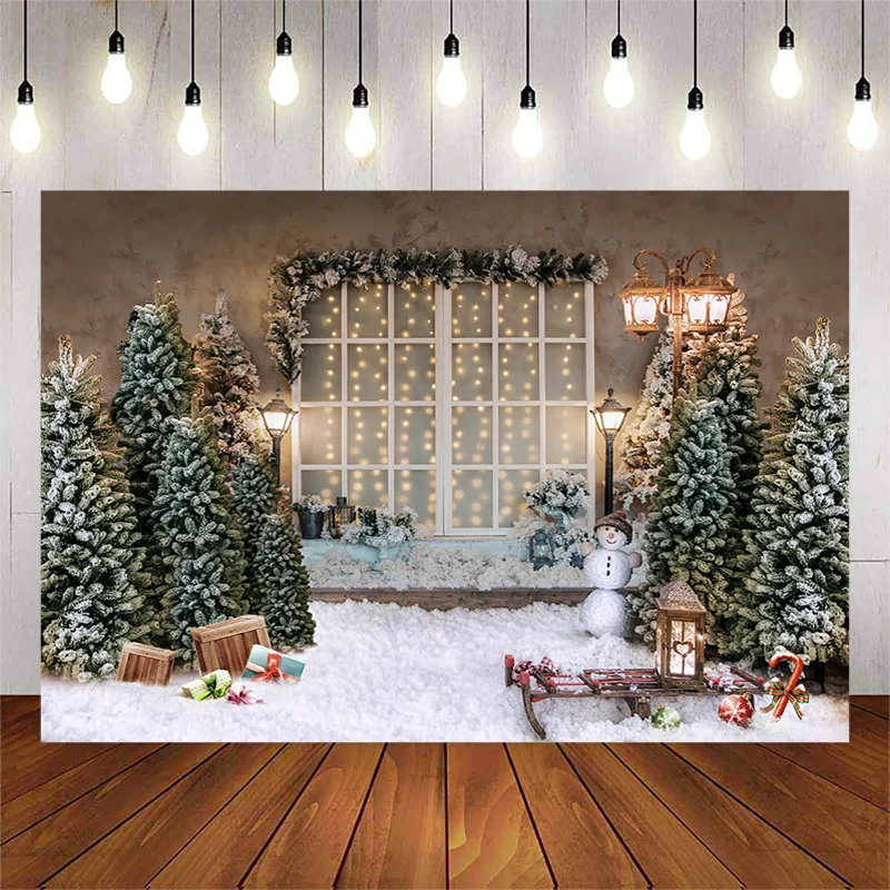 Рождественский фон для фотосъемки X-mas Tree Sled Snowfield фон для французского окна Вечерние Декорации реквизит баннер для фотостудии