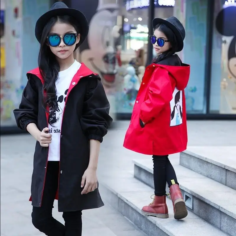 Двусторонняя Куртка для девочек, с капюшоном, тонкая Осенняя ветровка для подростков