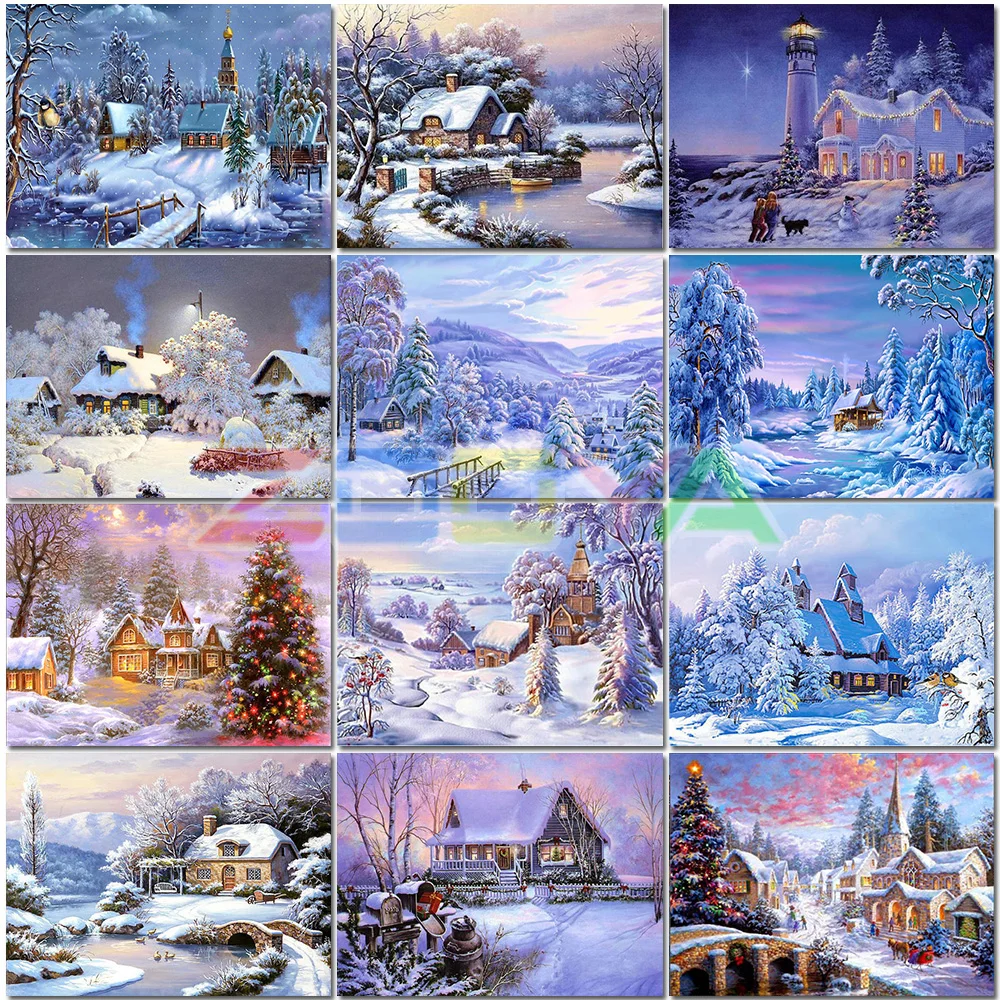 Алмазная картина, зимняя Алмазная вышивка, Снежные пейзажи, рукоделие, полный квадратный пейзаж, 3D Мозаика, вышивка крестиком, Настенный декор Lx855
