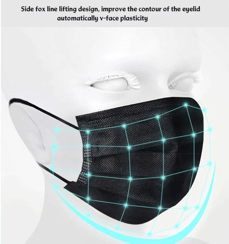 Маска Защитная для взрослых, одноразовая, черная, 3-слойная, из нетканого материала, с защитой от пыли и капель