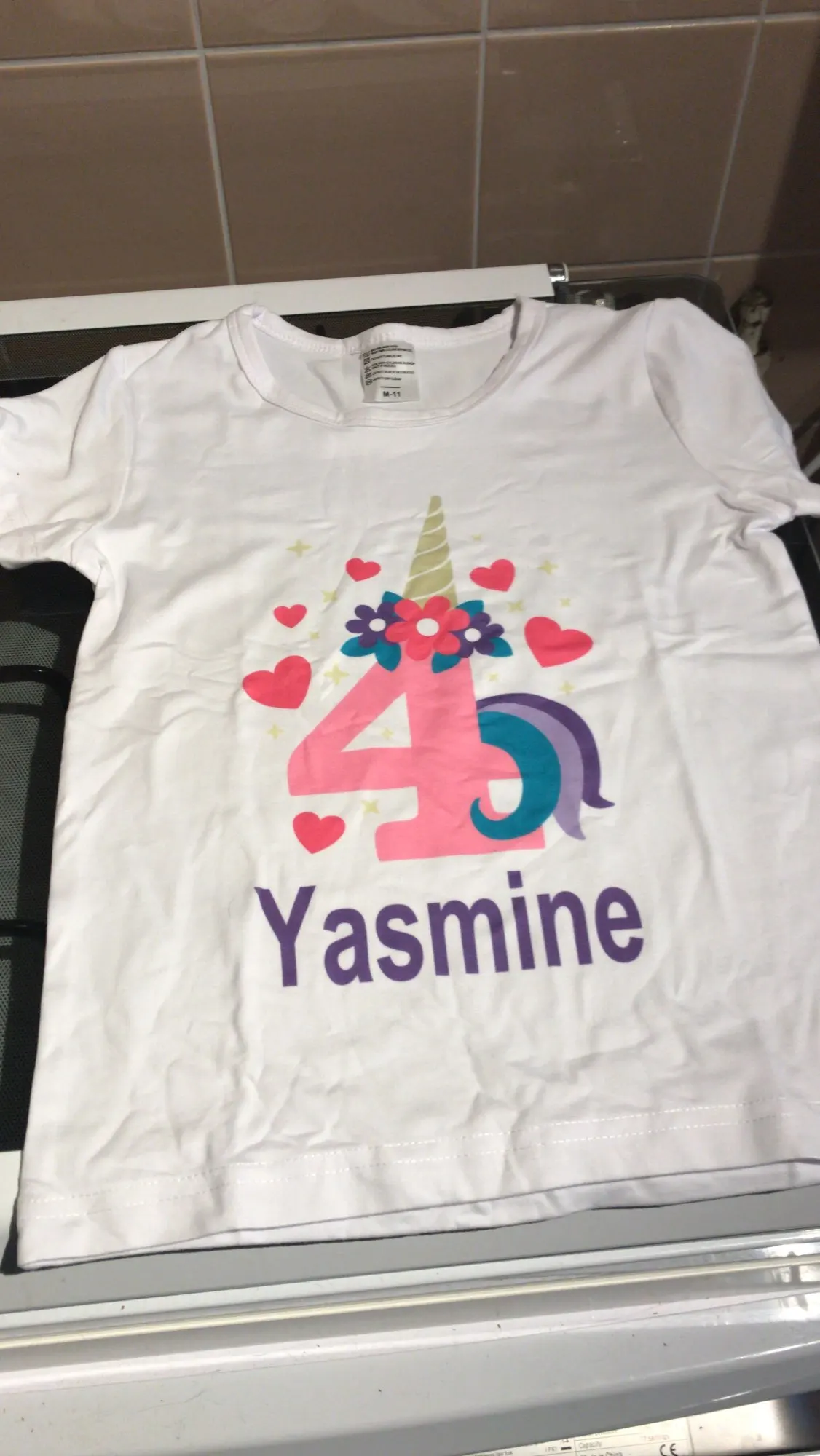 Camiseta muy bonita y con dibujo y nombre correctamente impresos.