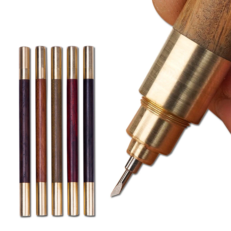 1. Наконечник из твердого сплава, высокая твердость, острее, износостойкость и долговечность. Съемный и сменный, ручка/Нож двойного назначения, простой и удобный; 2. Деревянные держатели сделаны из африканского розового дерева/черного сандалового дерева/шнура сандалового дерева/зеленого сандалового дерева/фиолетового сандалового дерева, который более удобно держать; 3. Металлическая латунная крышка ручки, безопасная и антикоррозийная; 4. Деревянный нож ручной работы, сочетание текстуры и внешнего вида, общий внешний вид высококлассный и изысканный.