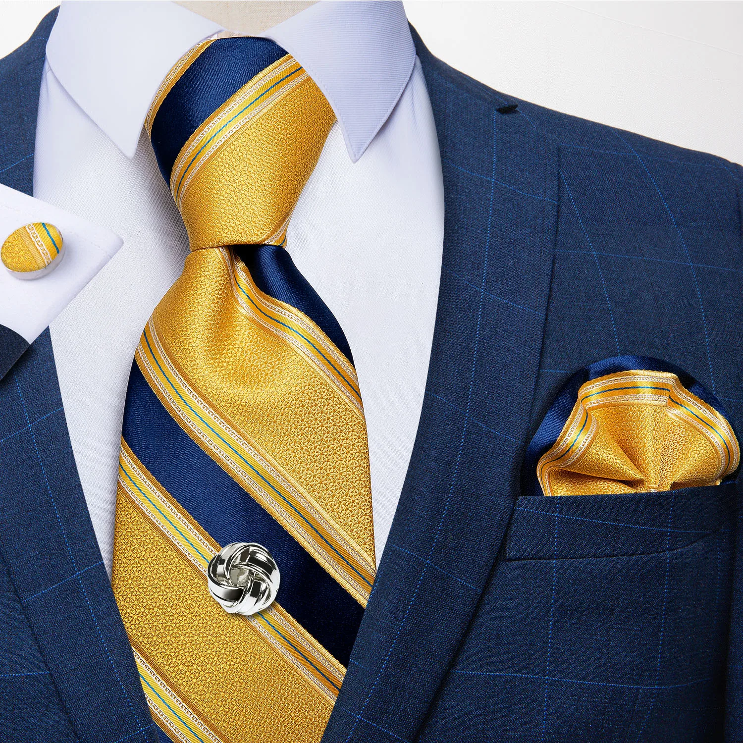 Мужской Шелковый галстук шириной 8 см в желтую полоску, карманная квадратная брошь, запонка, галстук, кольцо, набор, Официальный галстук для вечеринки, галстук для мужчин DiBanGu