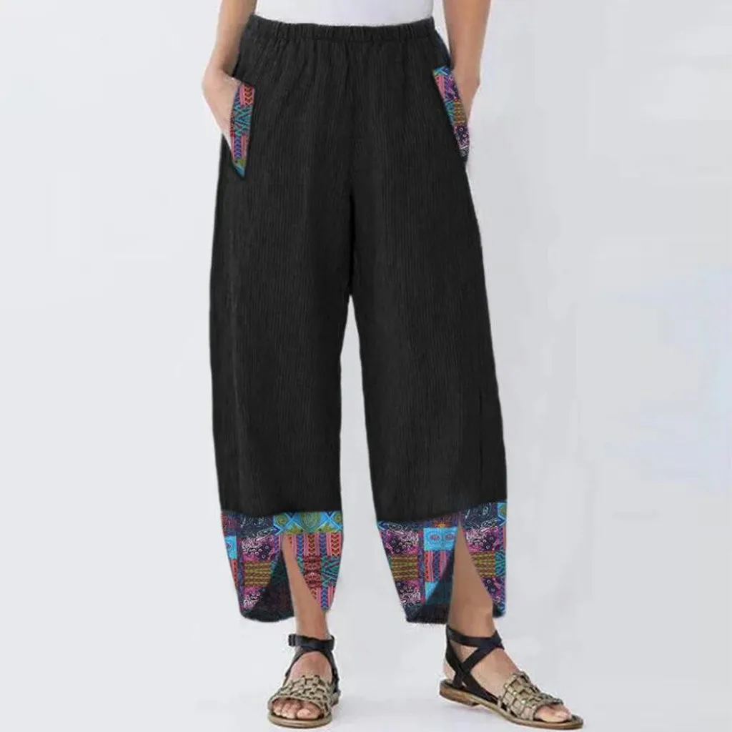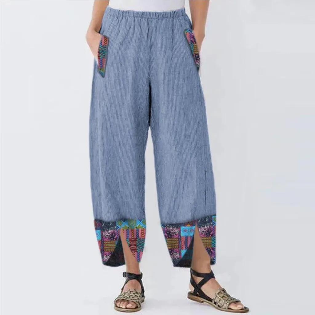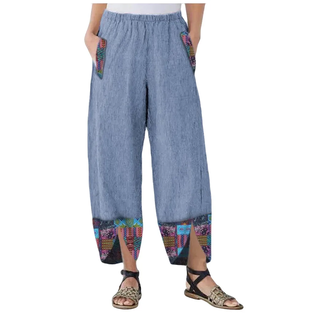 Брюки женские винтажные из хлопка и льна, Необычные брюки с эластичным поясом, повседневные укороченные штаны с принтом, 5xl, # D3, лето 2020