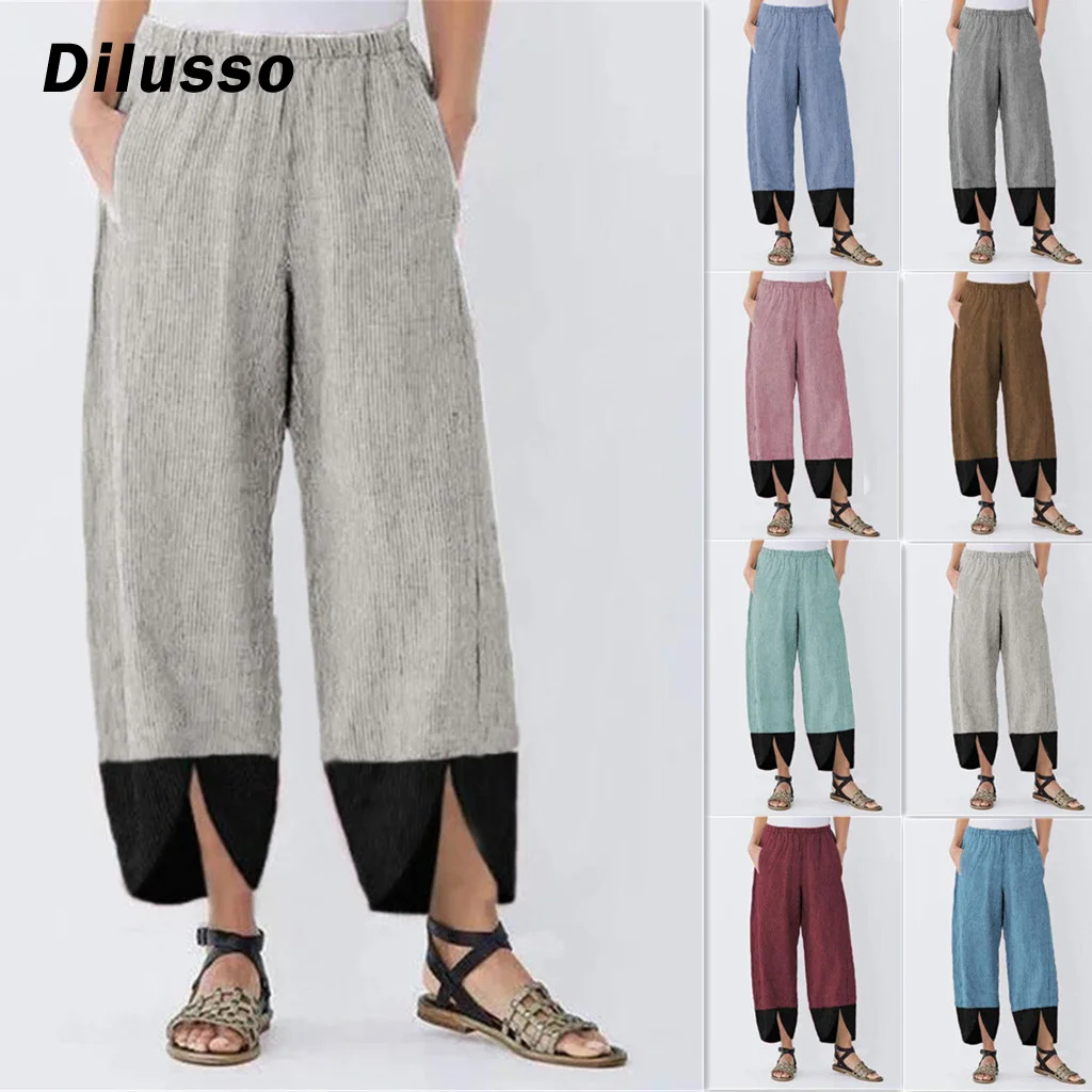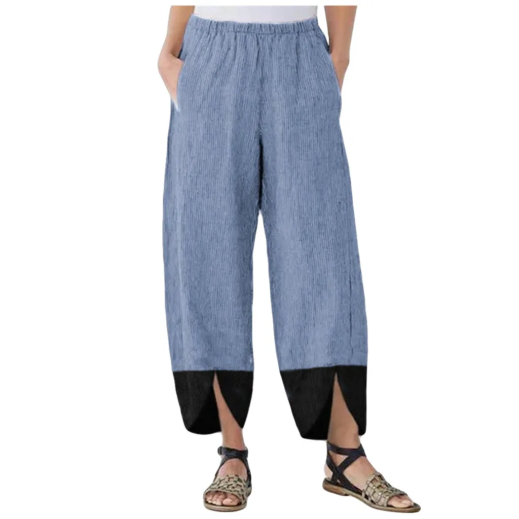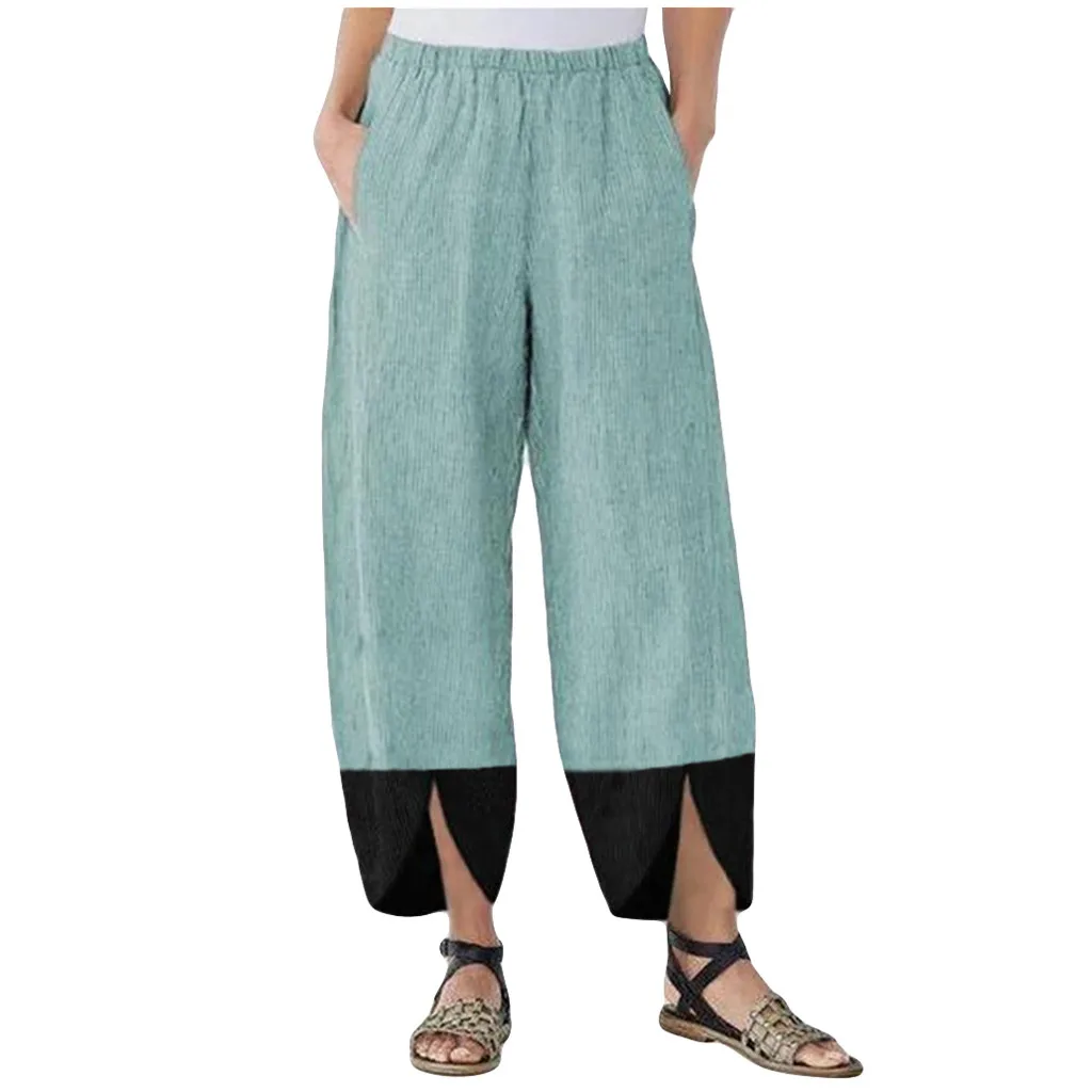 Женские повседневные хлопковые льняные однотонные Лоскутные свободные широкие брюки