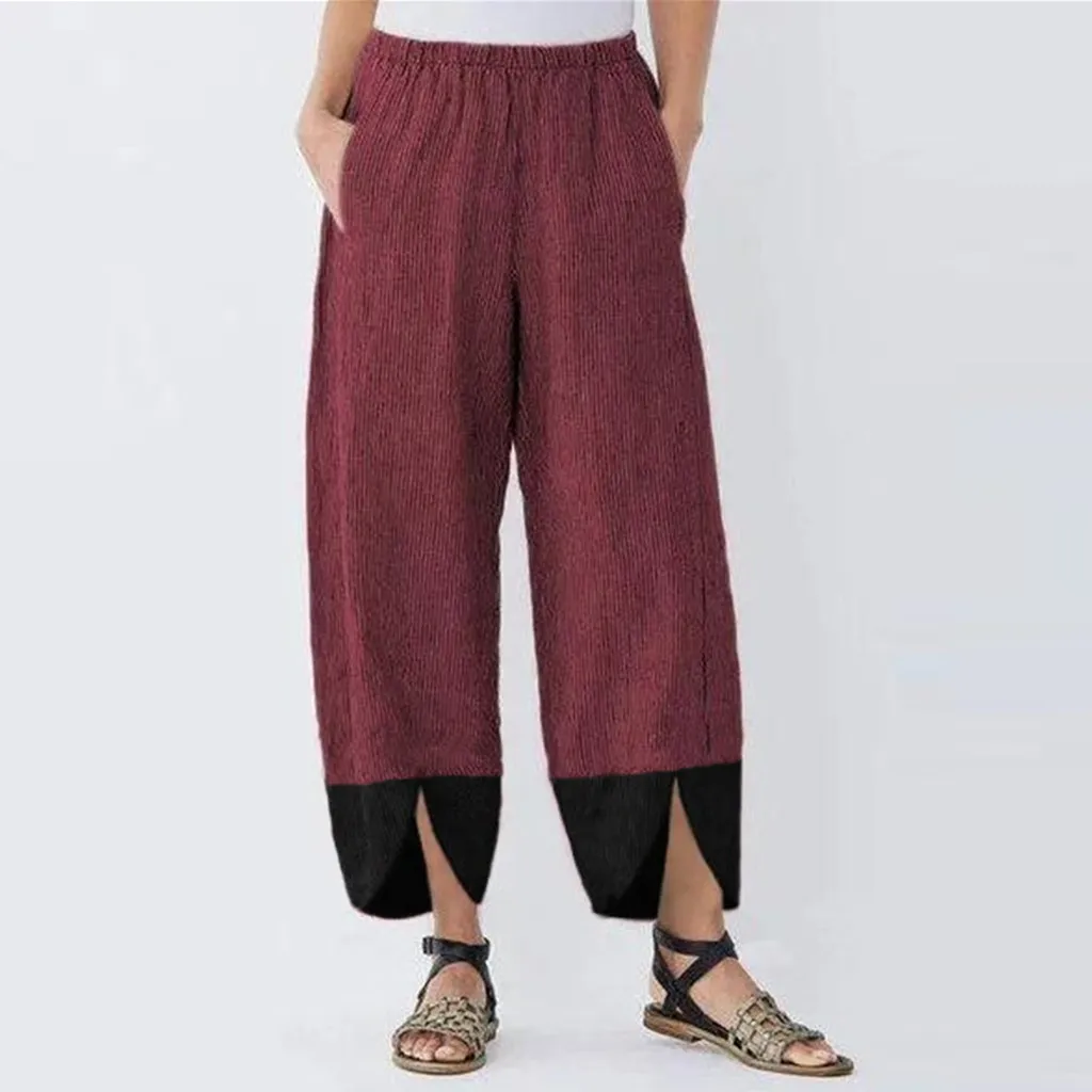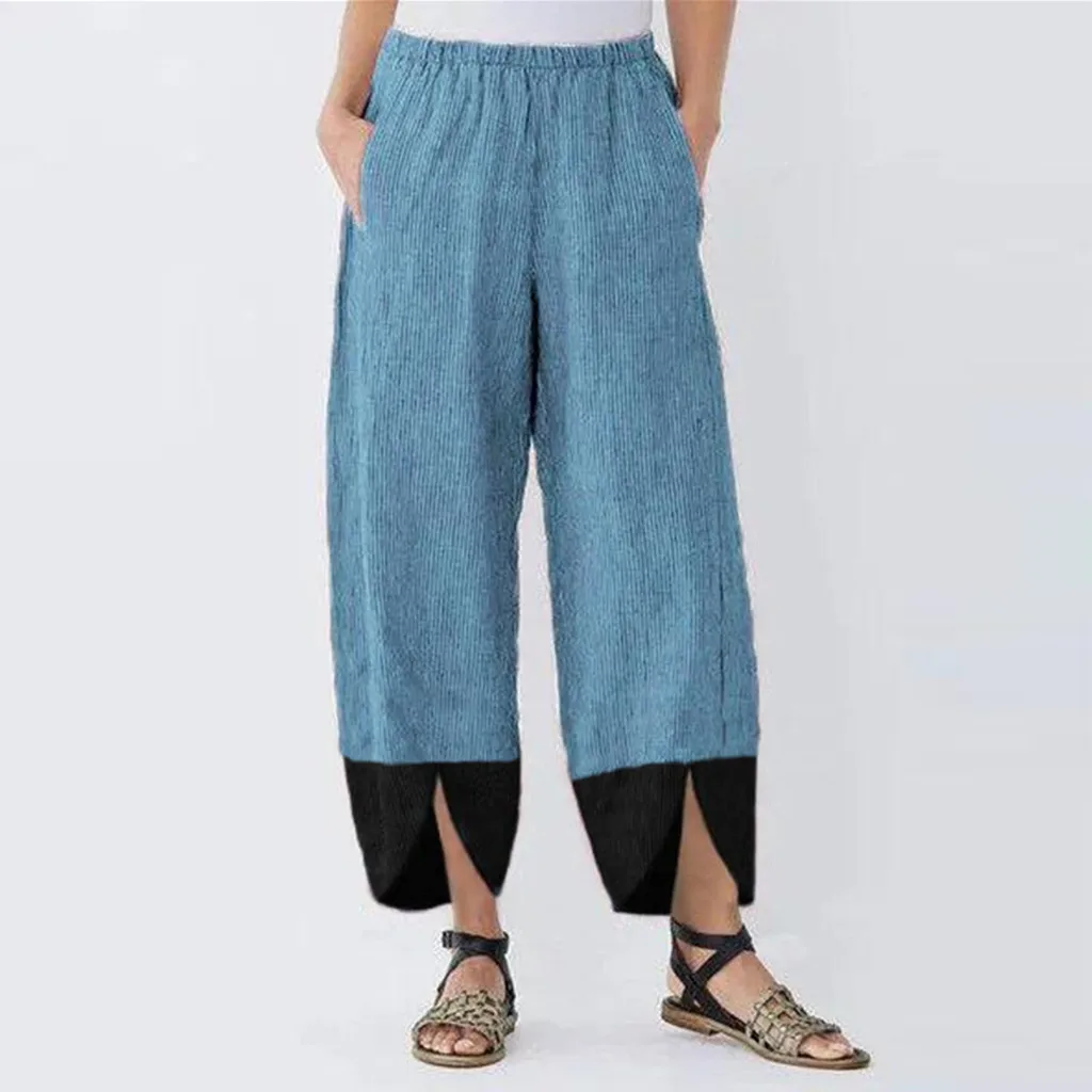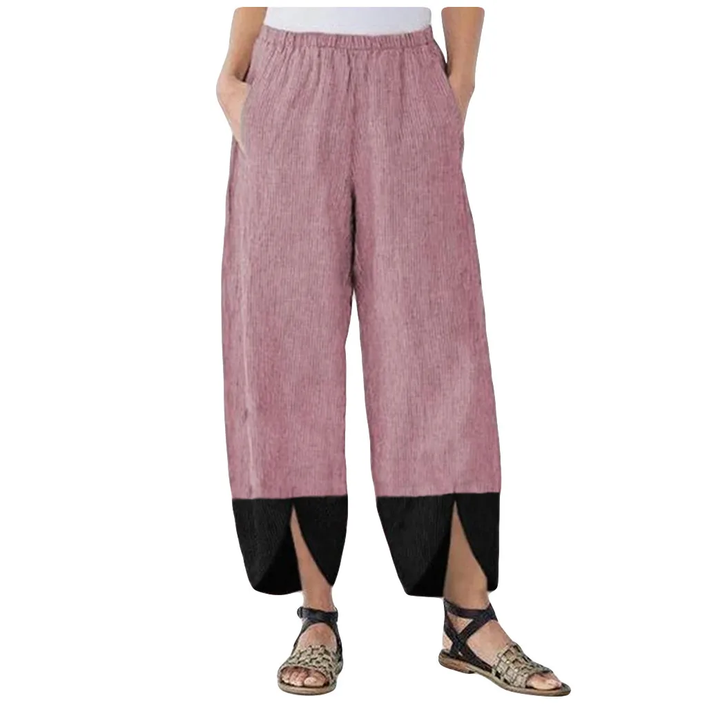 Женские повседневные хлопковые льняные однотонные Лоскутные свободные широкие брюки