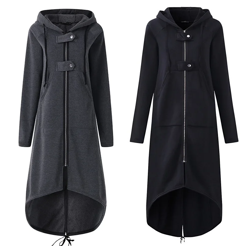 Женский Длинный плащ на молнии, теплая нестандартная ветровка с кап...
