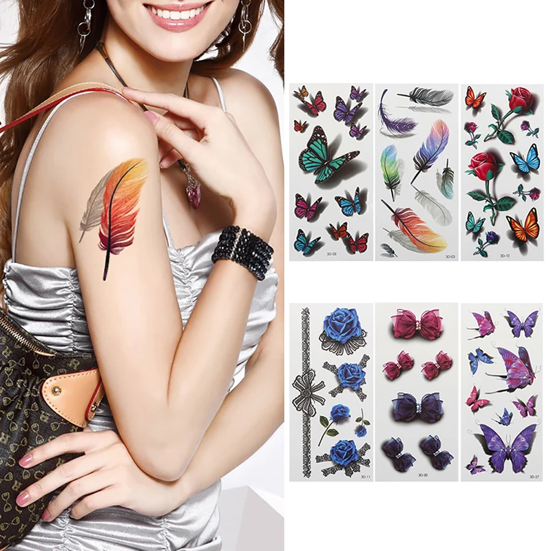 ОписаниеРеалистичный набор временных татуировок.3D Роза из перьев цветок бабочкаКрасивый и нежный набор из 6 милых 3D татуировок разных цветов.Очень популярная татуировка на данный момент и выглядит потрясающе!Отлично подходит для рук, рук, спины, грудины или ног.Получите ваш сегодня!Отлично подходит для праздников, фестивалей и т. д. или просто удивить своих друзей.Приблизительный размер: 19 см * 9 см (7,5 * 3.5in).Нетоксичные, безопасные для кожи, без PPD, одобренные FDA чернила.Последние 3-7 дней, полностью водонепроницаемые и выглядят как настоящая татуировка.