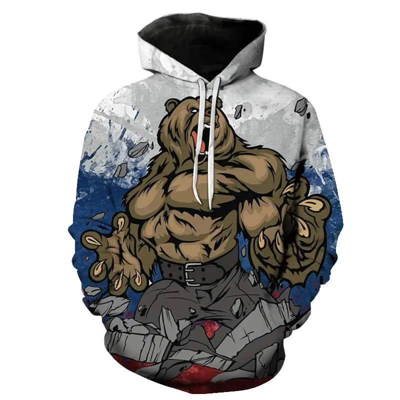 Толстовка с капюшоном с изображением русского медведя, Осень-зима 2020