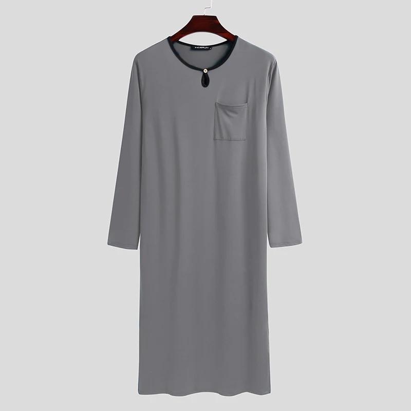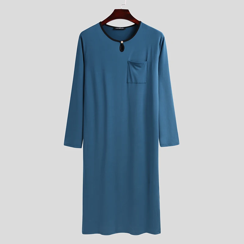INCERUN мужское платье с карманами, ночная рубашка, осенняя домашняя рубашка, Мужская одежда для сна, халат с длинным рукавом и v-образным вырезом, удобная Пижама, халат 5XL 7