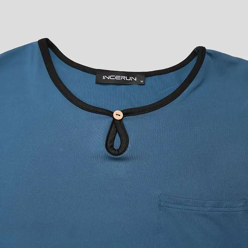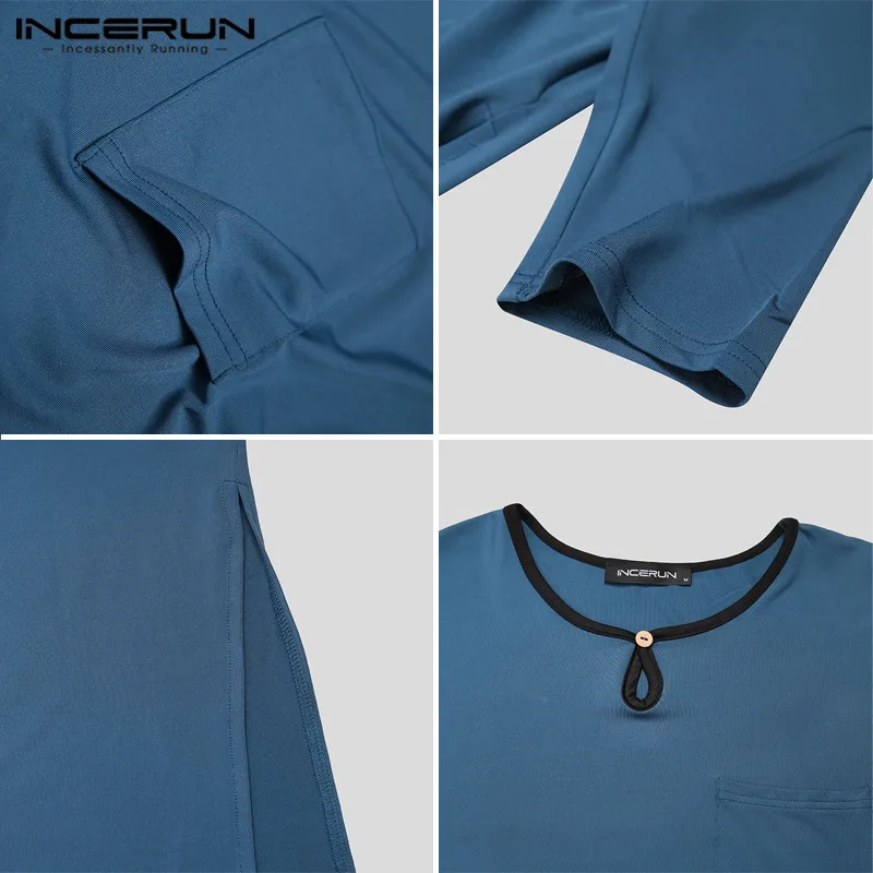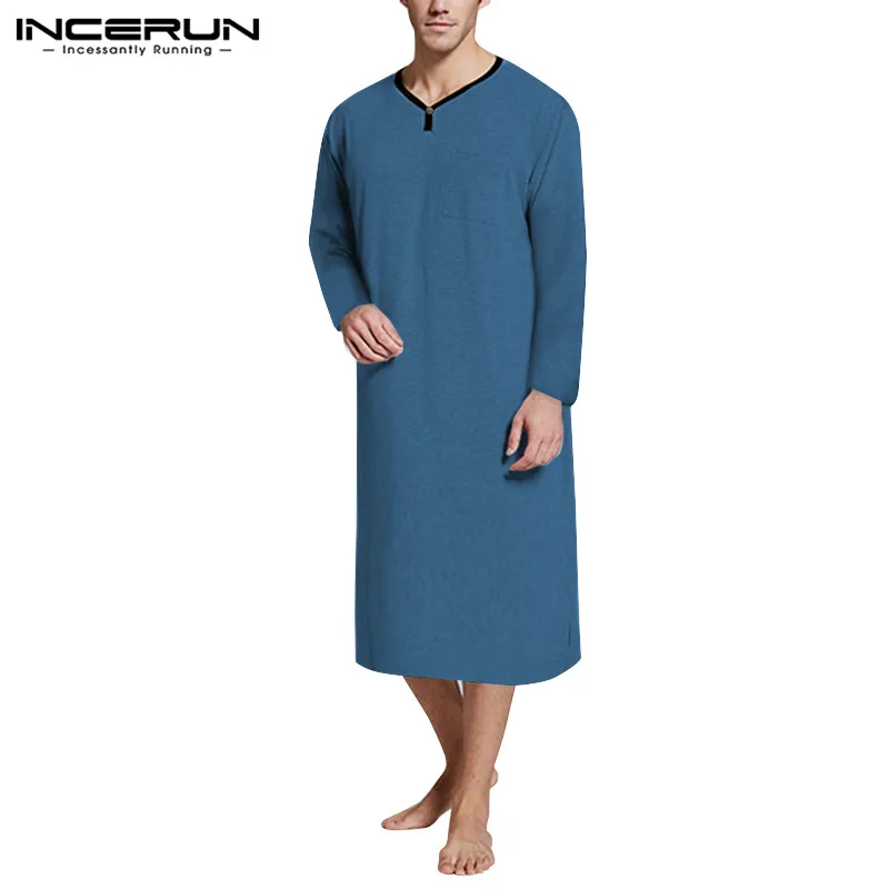 Мужская мусульманская одежда INCERUN, однотонная, с длинным рукавом...