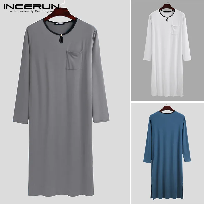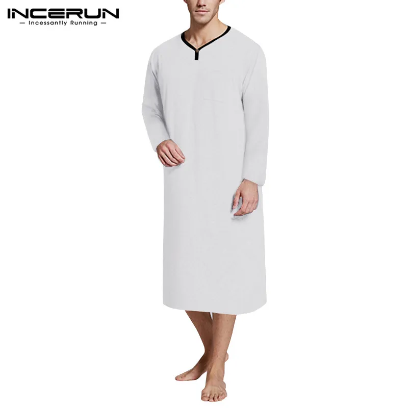 Мужской мусульманский кафтан INCERUN, однотонная одежда с длинными ...