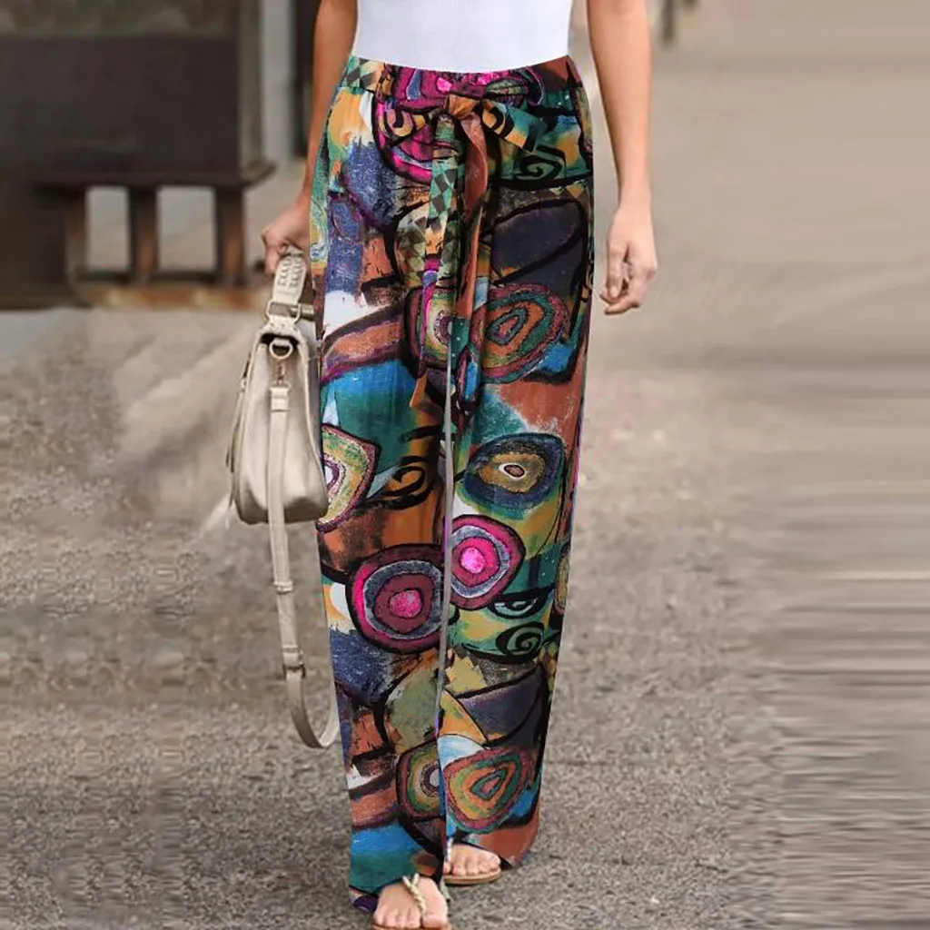 Женские повседневные штаны, осенние свободные брюки с широкими штанинами и шнурком, с эластичным поясом, # D3, 2020