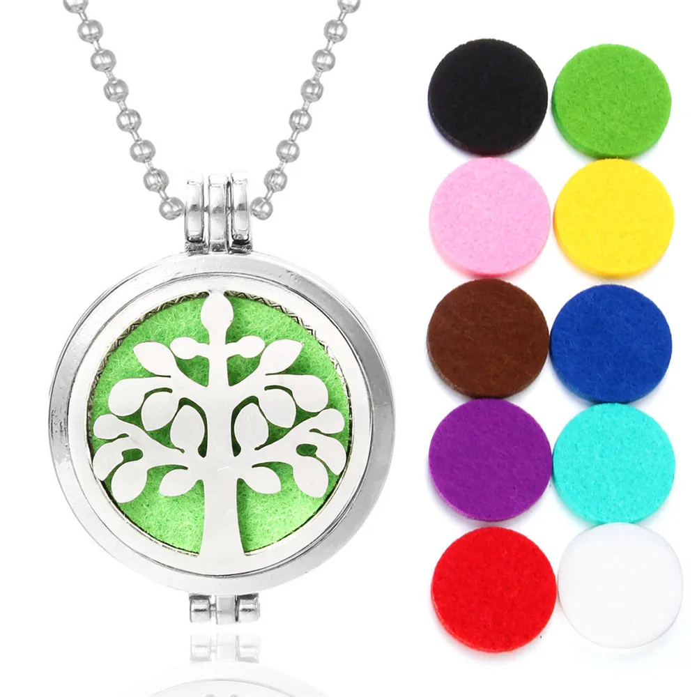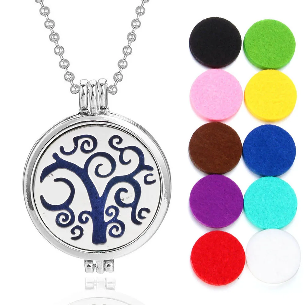 Ароматерапия ювелирные изделия эфирное масло диффузор ожерелье Древо жизни медальоны для парфюма кулон Арома диффузор ожерелье Бесплатная 10 подушечек