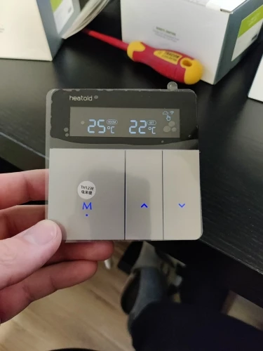 Очень понравился! Отличное качество, выглядит дорого и стильно. Все быстро работает, при выключении света запоминает последние показания температуры(подтягивает из приложения). Есть гибкая настройка по времени и температуре, возможность добавить внешний датчик температуры и собирать показания с 2х датчиков. Экран очень четкий и информативный (есть 2 режима подсветки при нажатии становится яркой, а через 20 сек тускнеет, ночью не мешает) Единственный минус: Через приложение возможно настроить только до 4х изменений температуры в день и выбор по дням доступен только: С Пн-Пт, Св, Вс. То есть нельзя поставить на среду одну температуру, а на четверг другую(только одинаковую в будни дни).