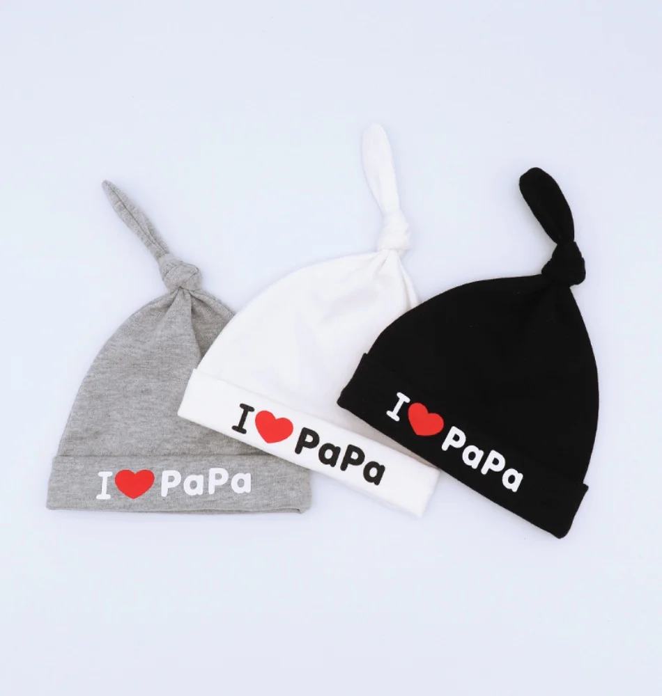 Осенне-весенняя детская шапка, детская вязаная шапка из шапочка для новорожденного хлопка с принтом Я люблю папу, маму, шапки для мальчиков и девочек