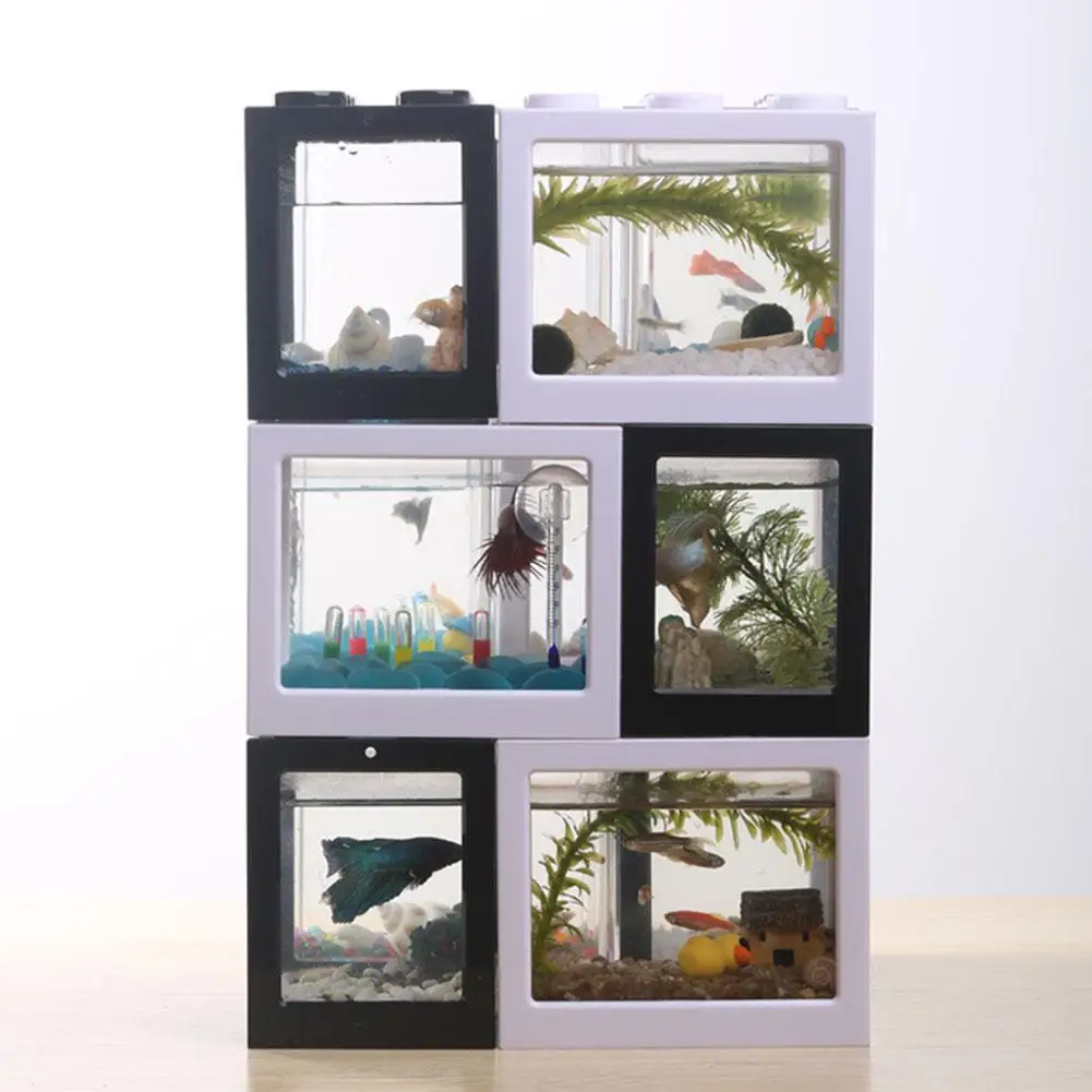 Миниатюрный аквариумный рыболовный бак, строительные блоки в виде ч...