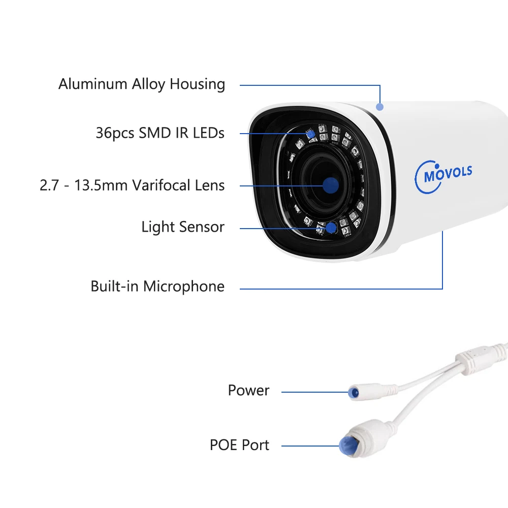 Камера наблюдения MOVOLS имеет прочный алюминиевый корпус и корпус, сВодонепроницаемость IP66. Таким образом, вы можете свободно устанавливать его на открытом воздухе, например, в гараже, на заднем дворе или в любом другом месте. Он может выдерживать суровые погодные условия, включая дождь, снег, сильный холод и тепло.