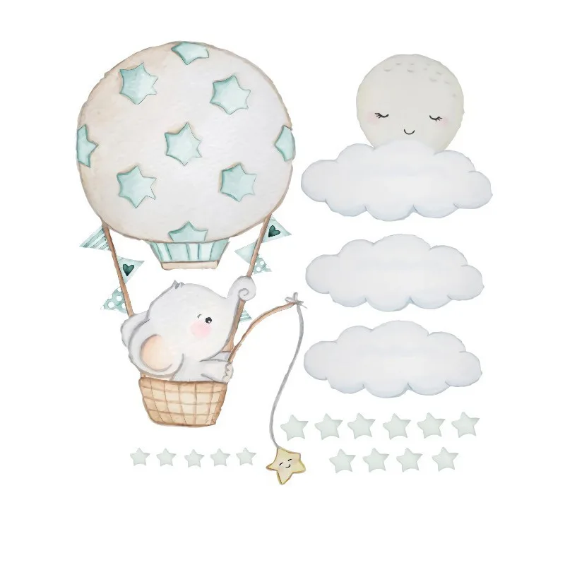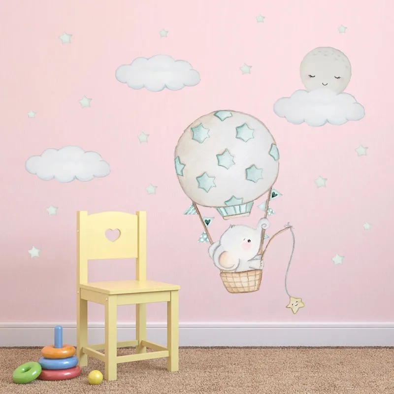 Мультяшные Животные наклейки на стену в виде слона для детской комнаты украшение для детской комнаты воздушные шары наклейки на стену облако Луна Звезды ПВХ