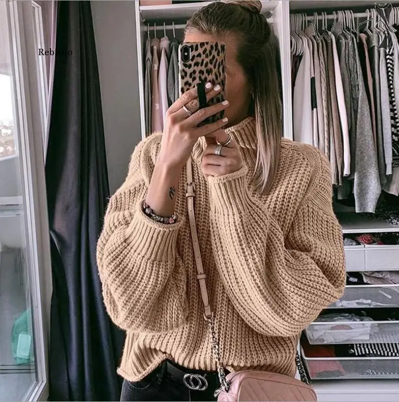 Водолазка цвета хаки, женский свитер, джемпер с длинным рукавом, вязаный СВОБОДНЫЙ Модный пуловер, Женский вязаный свитер на осень и зиму