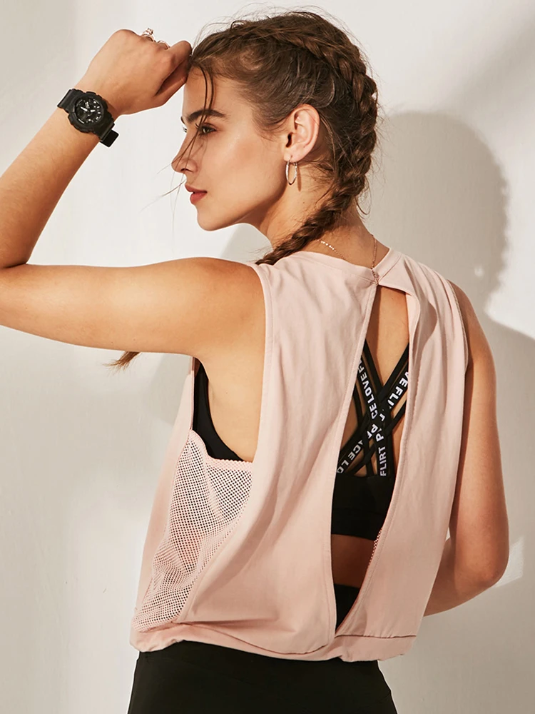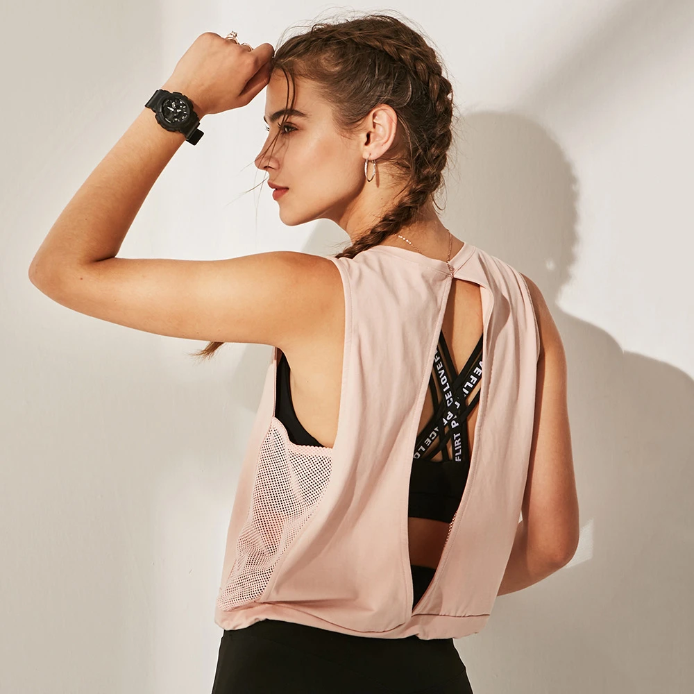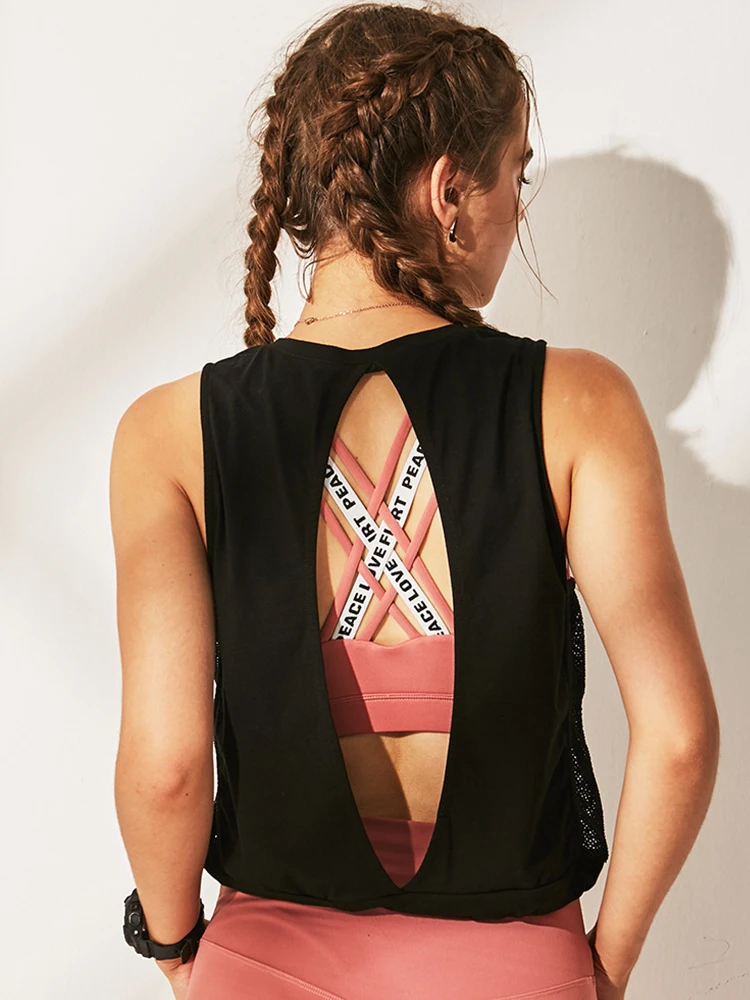 Сексуальная Женская рубашка для спорта и йоги с открытой спиной, сетчатая Лоскутная дышащая однотонная блузка, укороченный топ для занятий фитнесом