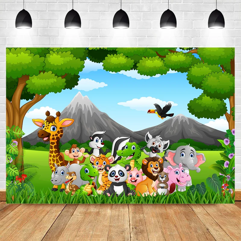 Дикая один день рождения фон джунглей животных вечерние фото фон Зо...