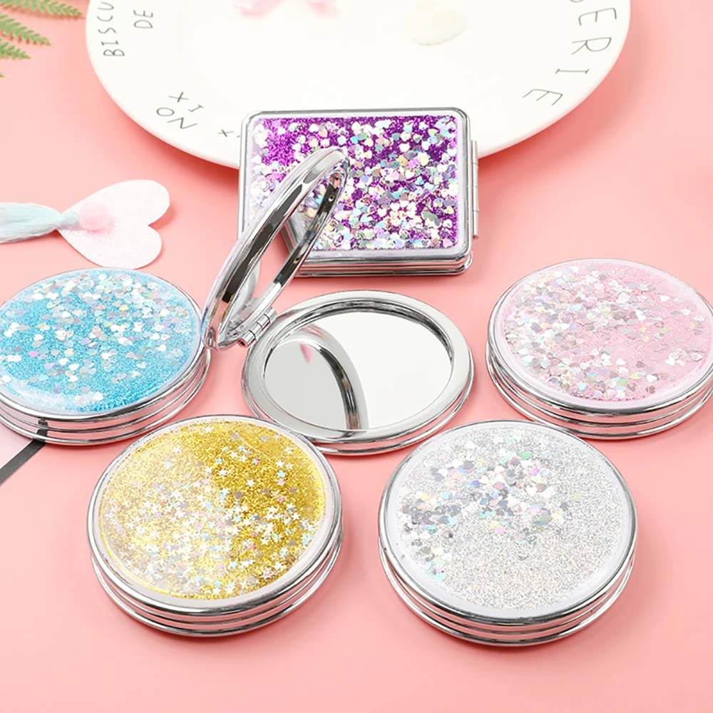 1 шт. блестящее зеркало для макияжа с зыбучим песком милое двухстороннее карманное зеркало для девочек портативное складное зеркало креативный маленький подарок