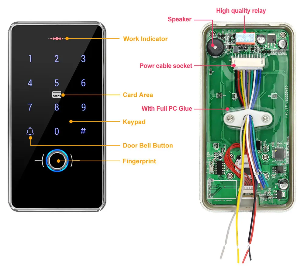 IP68 Водонепроницаемый RFID контроллер доступа по отпечатку пальца