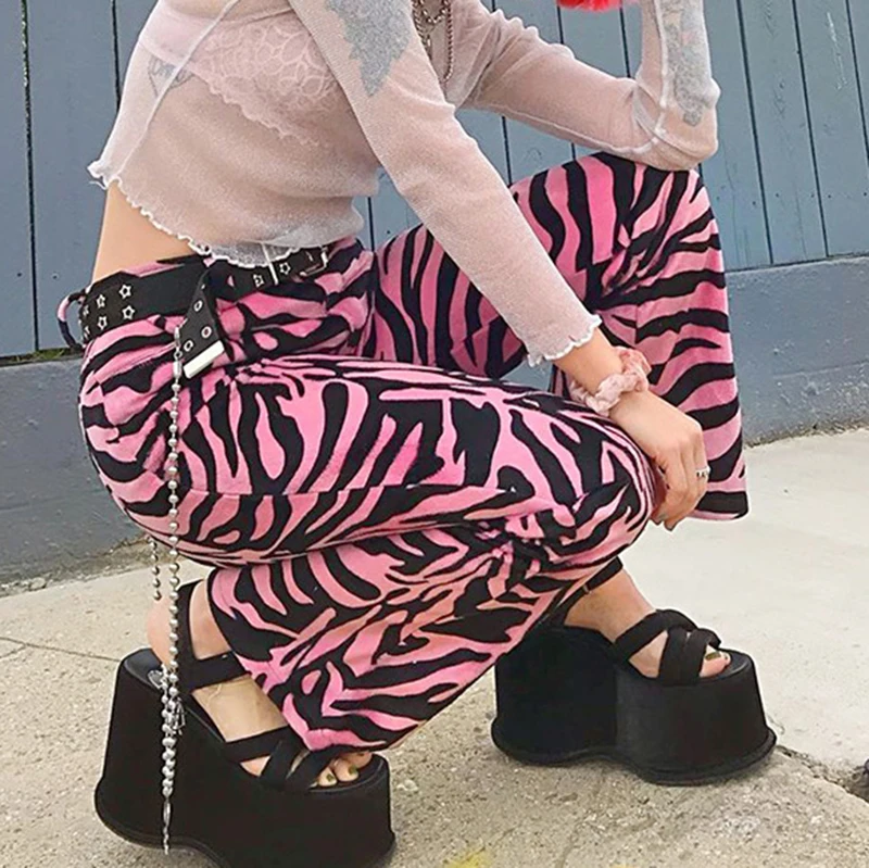 Сезонные брюки с высокой талией, женские повседневные Прямые длинные брюки с принтом зебры, модные розовые джоггеры Harajuku ASPA81526