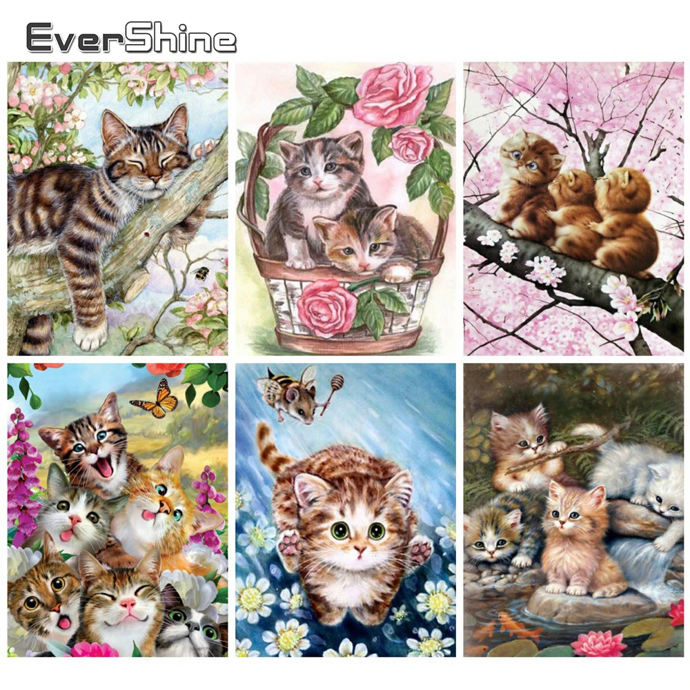 EverShine 5D DIY алмазная живопись кот Вышивка крестом Женская Стразы ручная работа украшение для дома