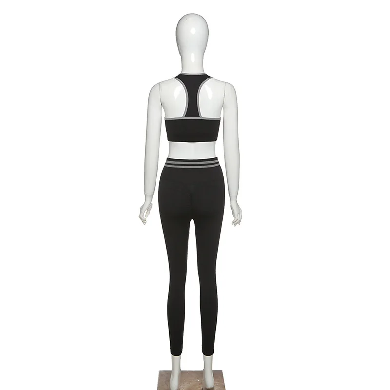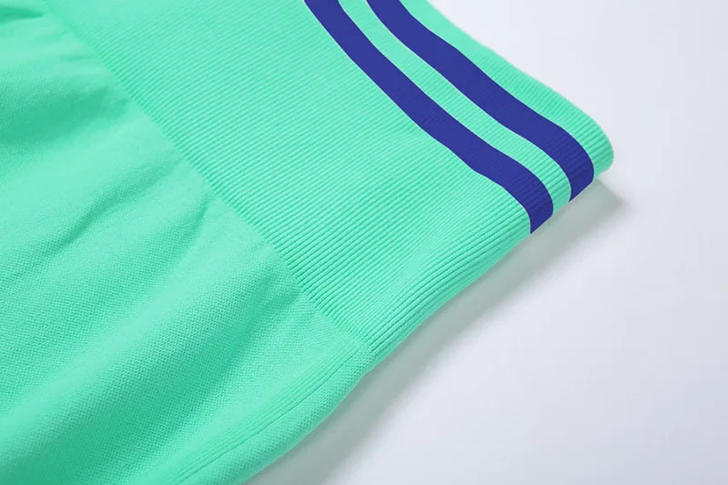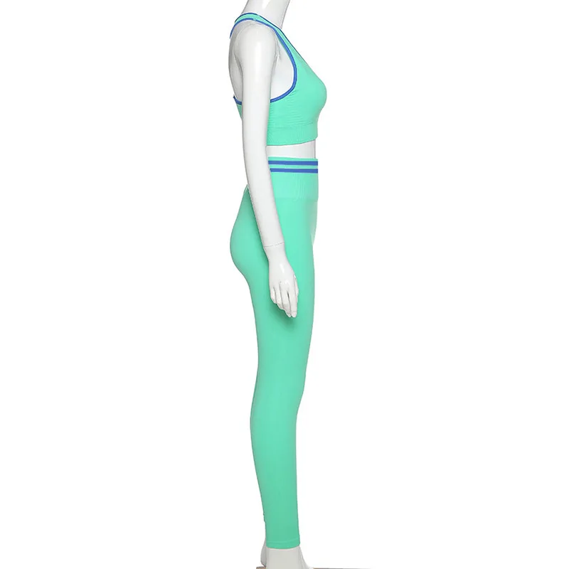 Комплект спортивный женский бесшовный из топа и леггинсов, в полоску