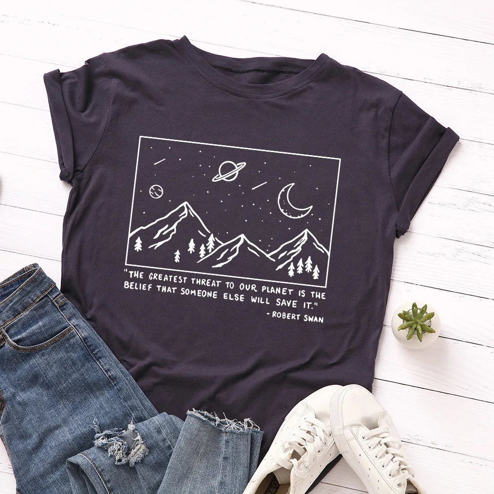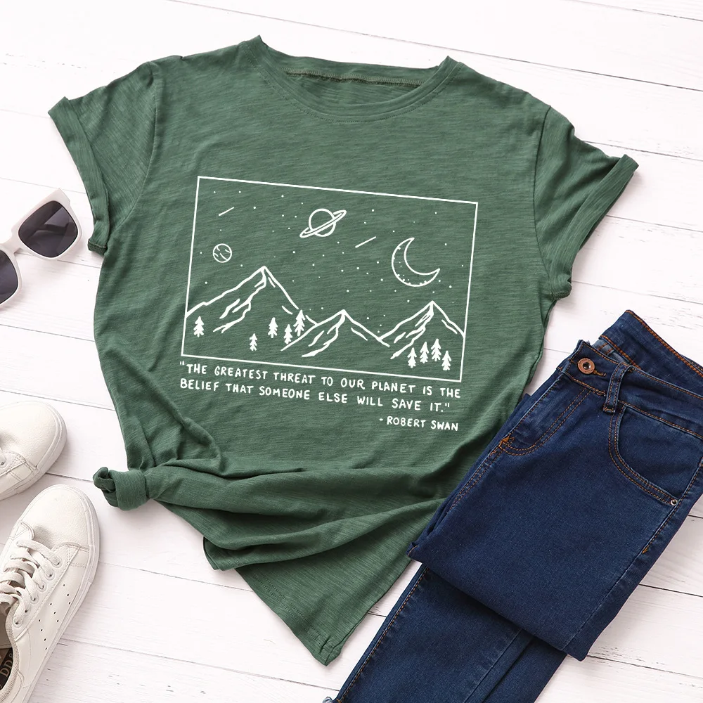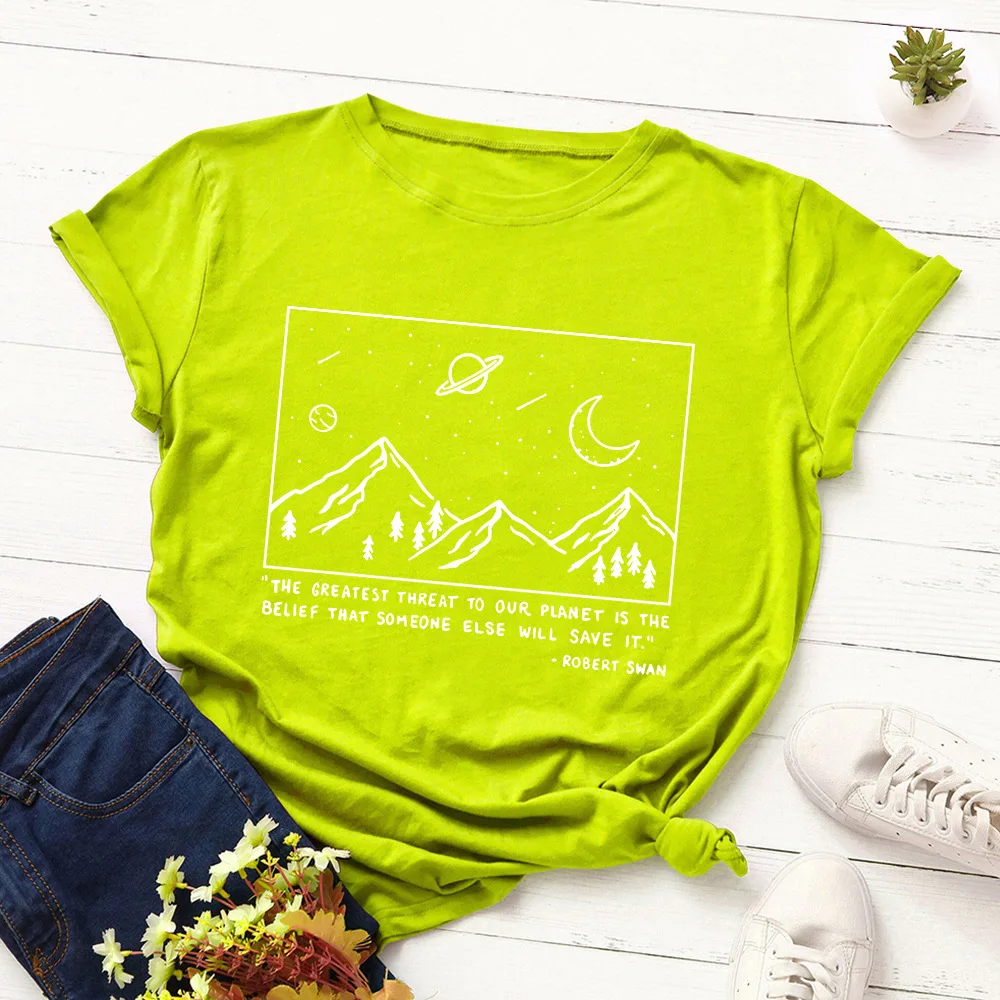 Футболка JCGO Женская хлопковая в стиле оверсайз, повседневный топ с принтом космоса, Луны, гор, с коротким рукавом, размера плюс, 5XL, на лето
