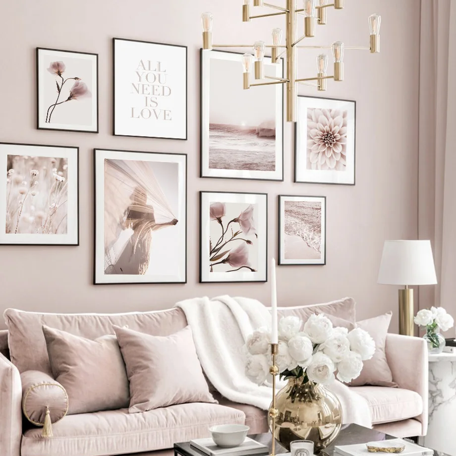 Розовый пион, Парижская башня, скандинавский пейзаж, постеры и прин...