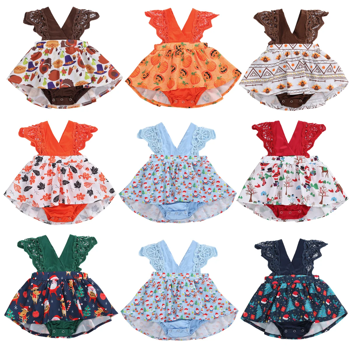 Комбинезон детский с коротким рукавом, кружевной, 8 видов