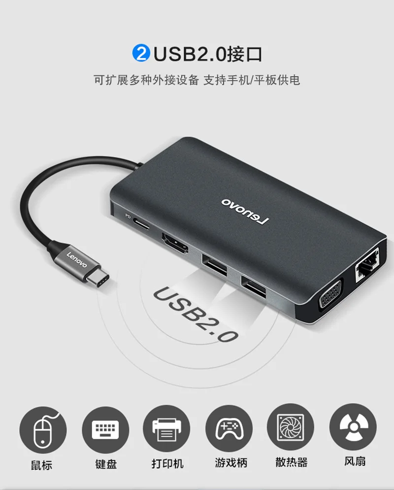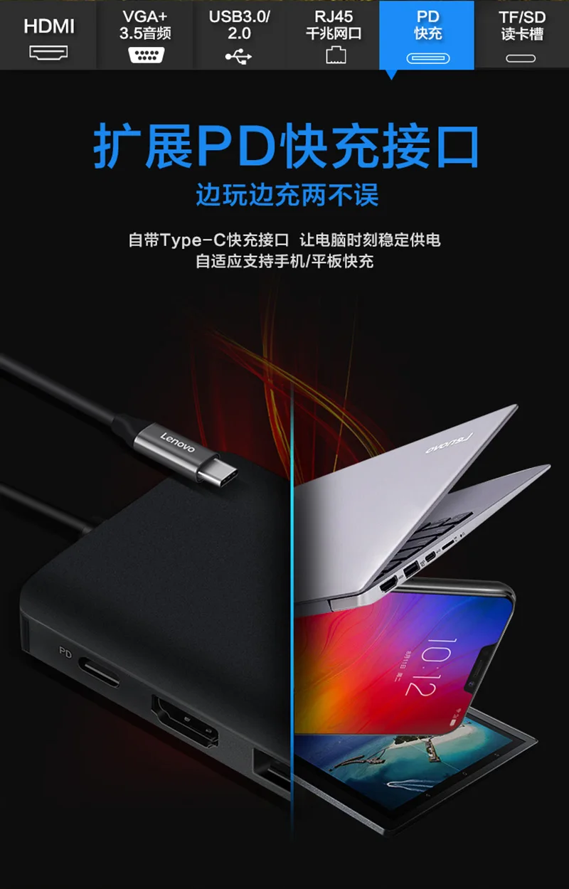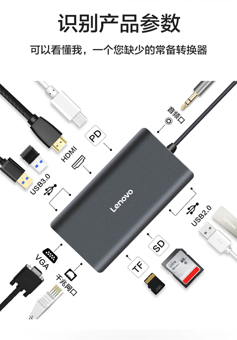 Lenovo USB Тип C HUB адаптер 10 порта USB разветвитель для ГМДИ VGA...