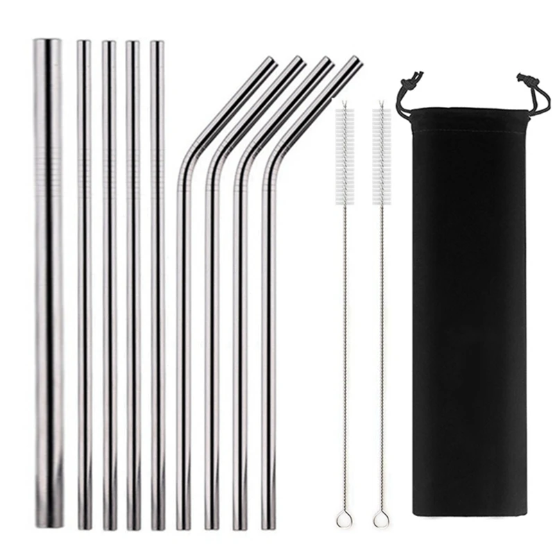 Многоразовая металлическая соломинка из нержавеющей стали 304, набор соломинок для питья с чистящими щетками, прямые изогнутые трубочки Boba, аксессуары вечерние