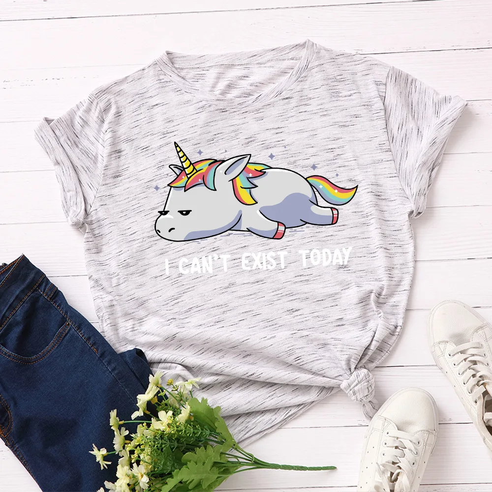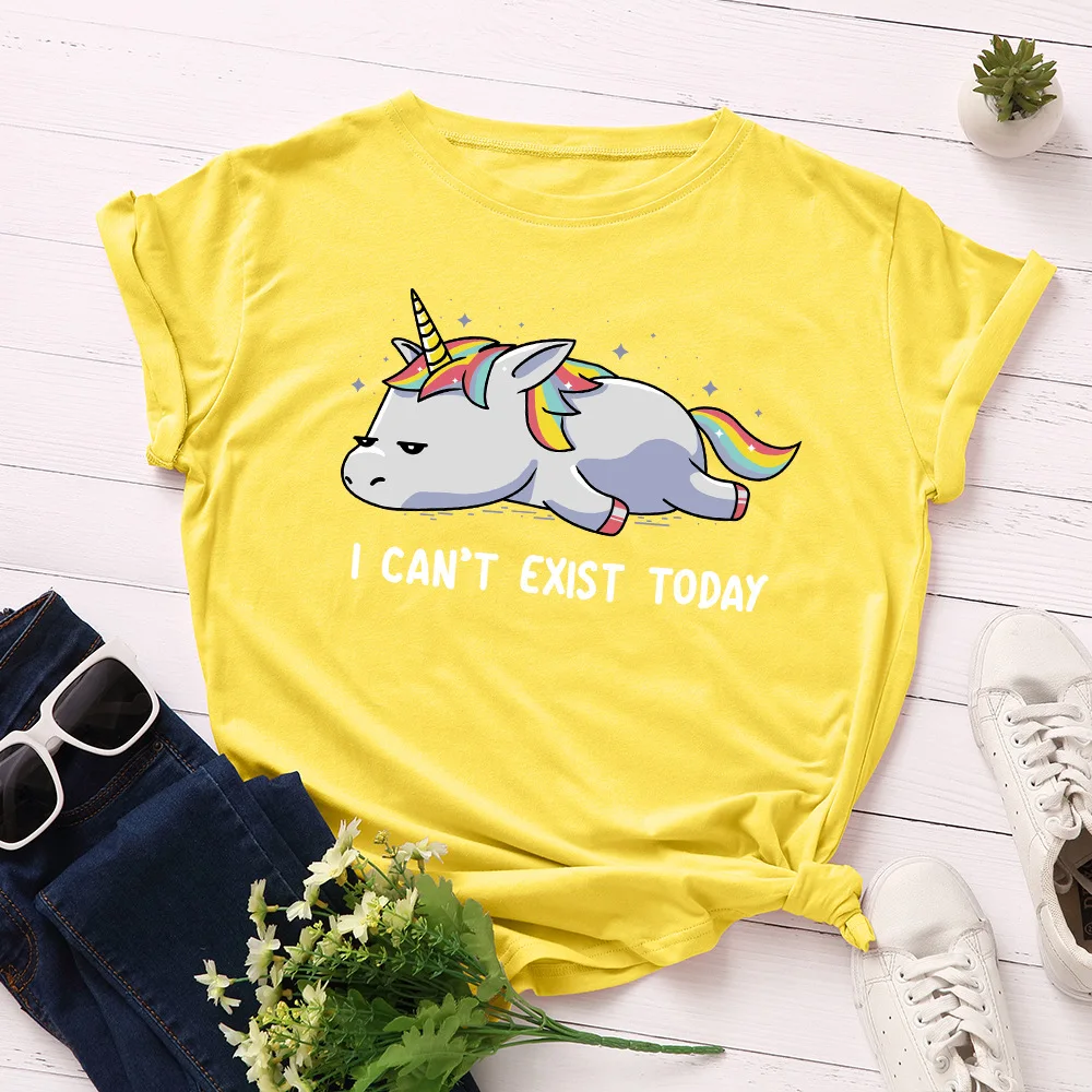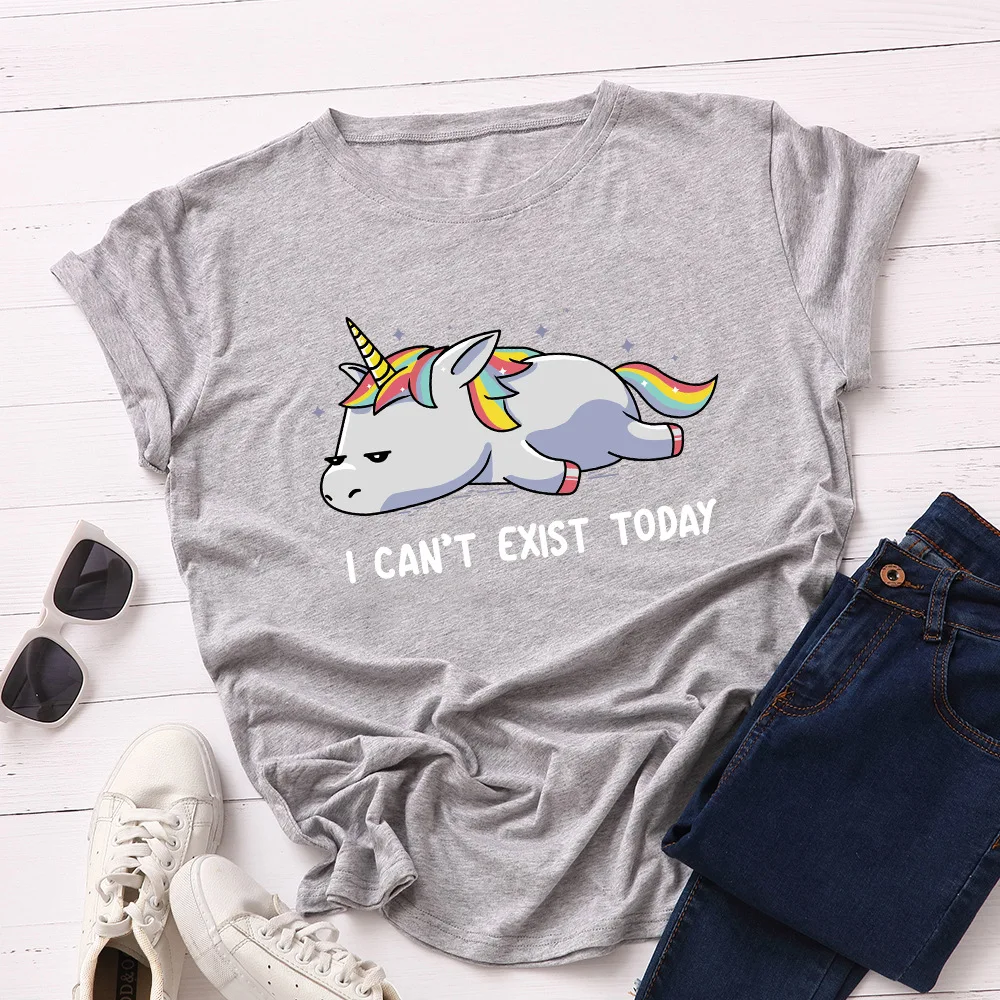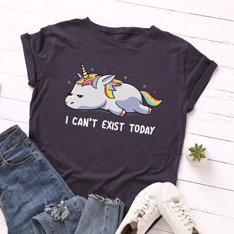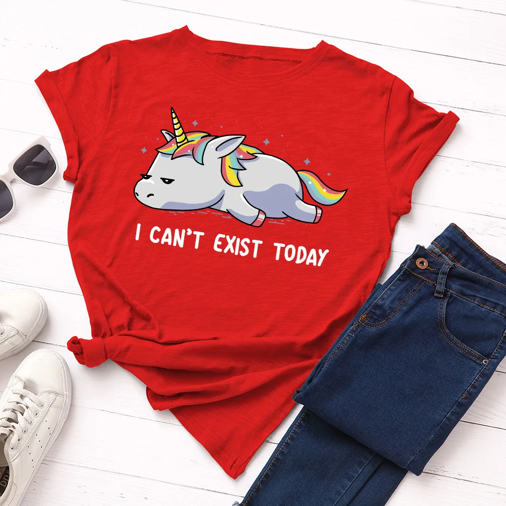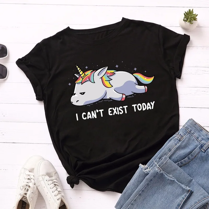 Летняя женская футболка JCGO, универсальные Хлопковые женские футболки 5XL с принтом ленивого единорога, Женские повседневные топы большого размера с коротким рукавом, футболки
