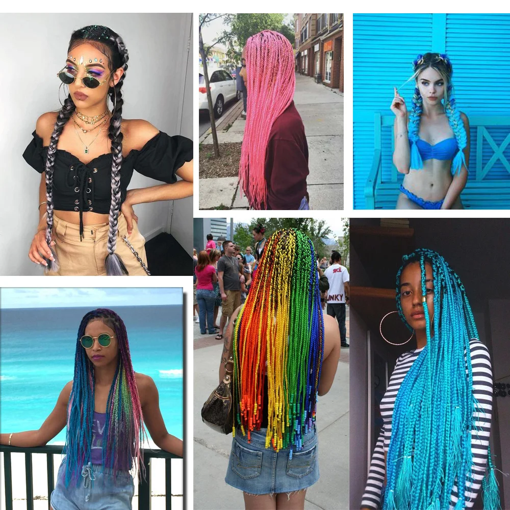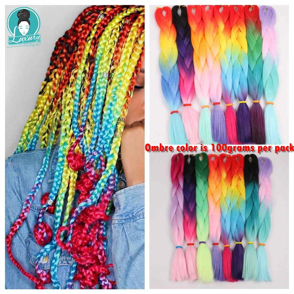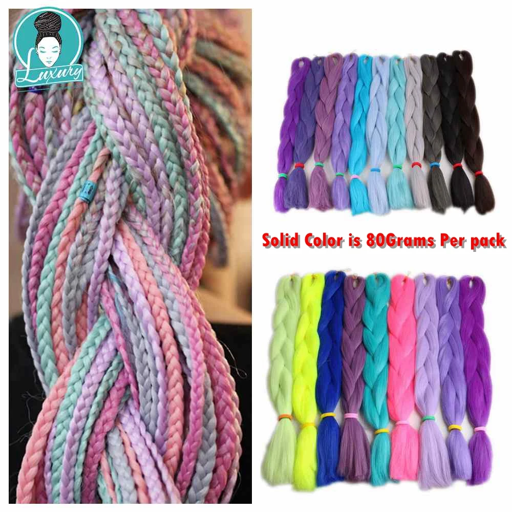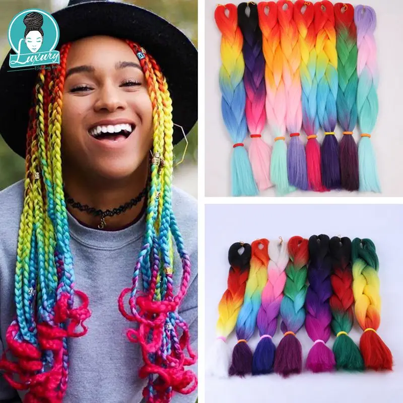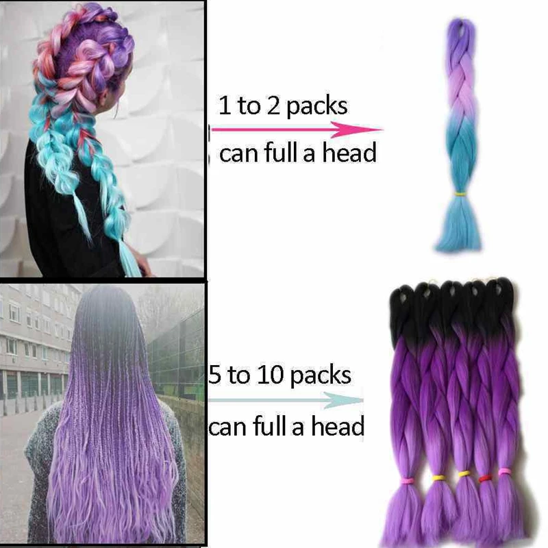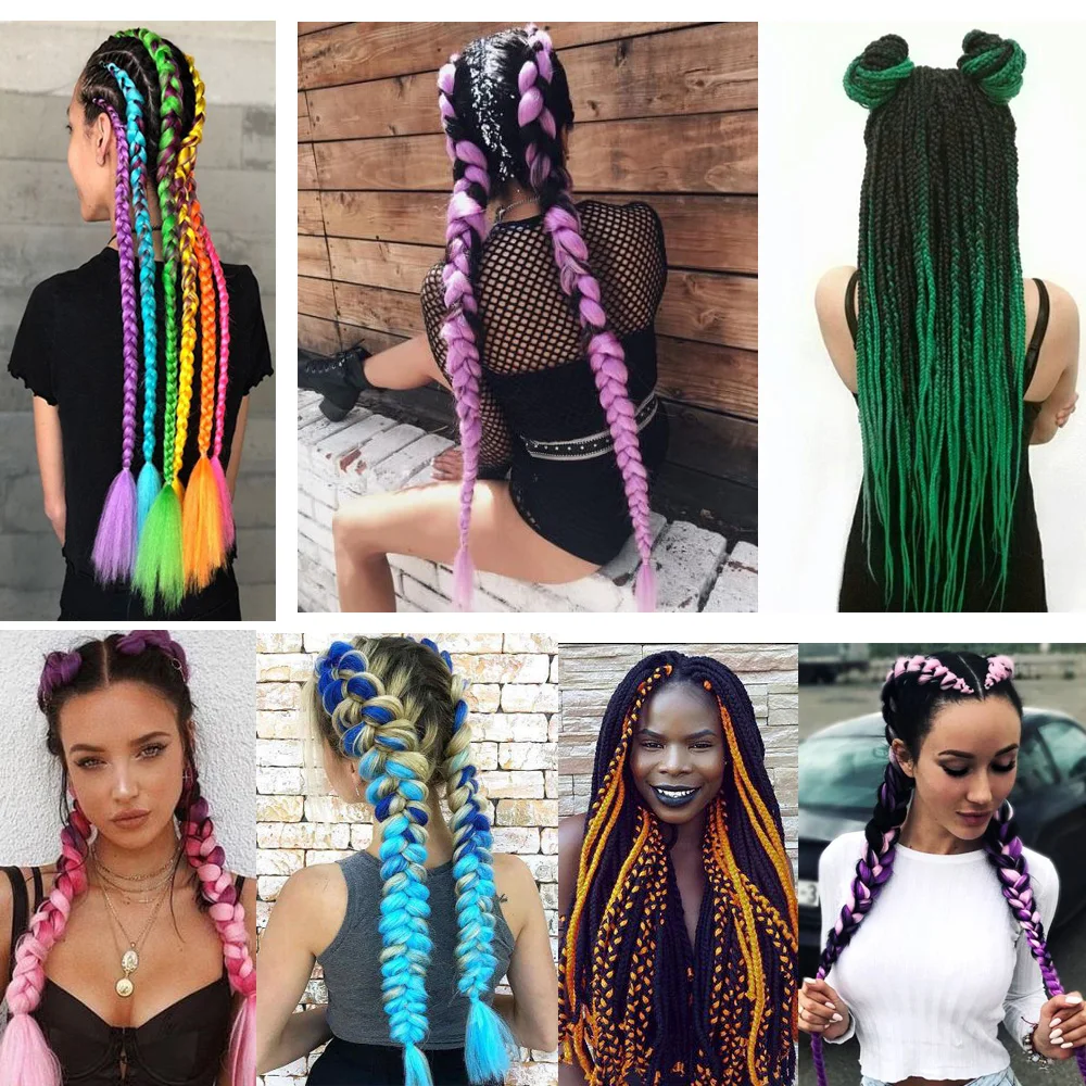 Роскошные 24 дюйма 60 см мягкие маленькие яки однотонные неоновые розовые фиолетовые Омбре Henlon плетеные волосы для наращивания Джамбо