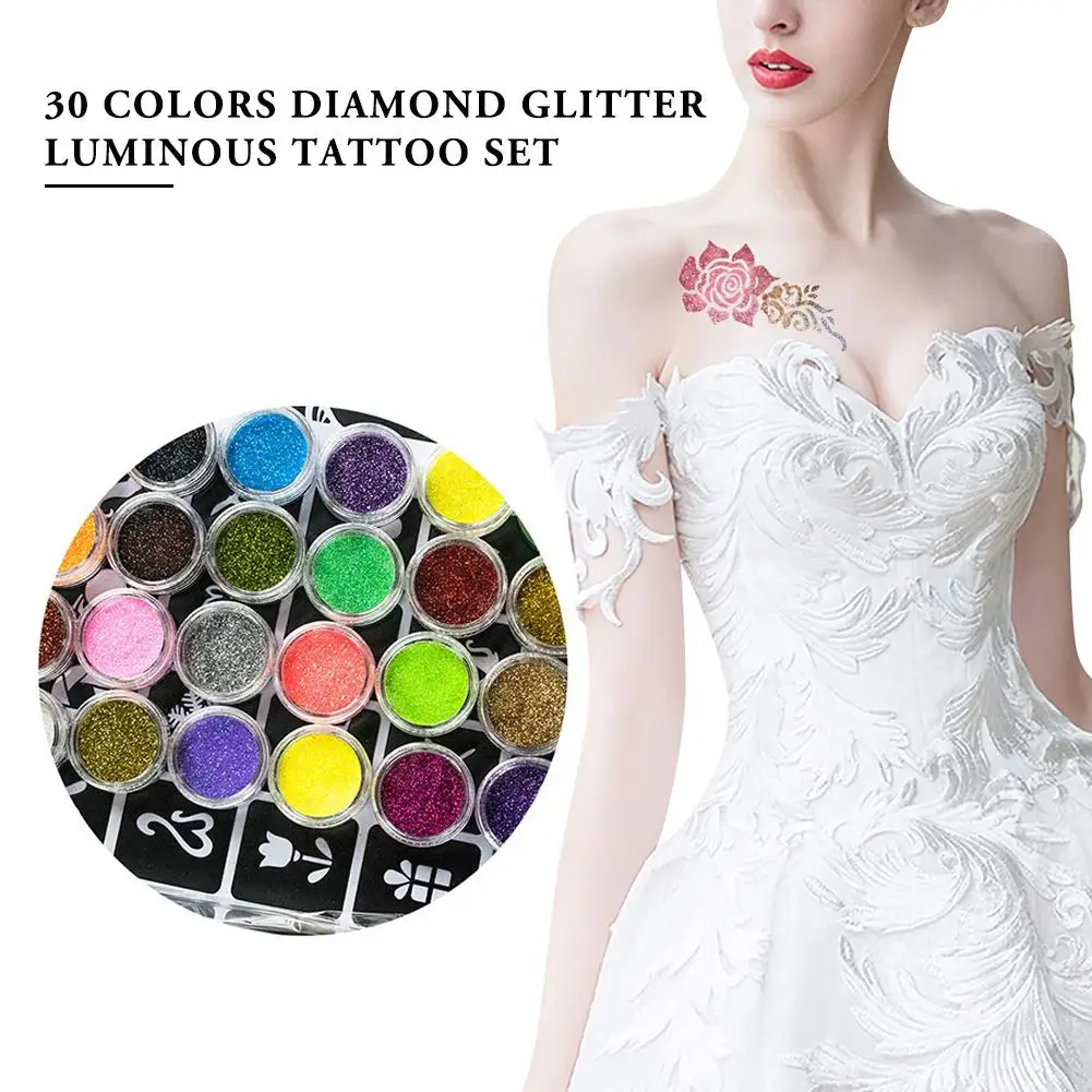 Блестящие тату-Наборы 30 цветов 125 шаблоны Алмазная вспышка для Временной Татуировки Набор детских Искусств набор инструментов
