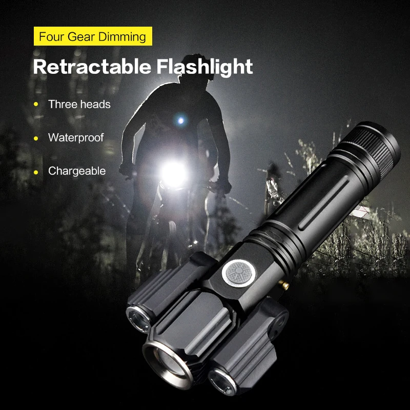 Многофункциональный выдвижной фонарик с тремя головками, truch, перезаряжаемый от USB, уличный водонепроницаемый комплект для кемпинга и ночного освещения