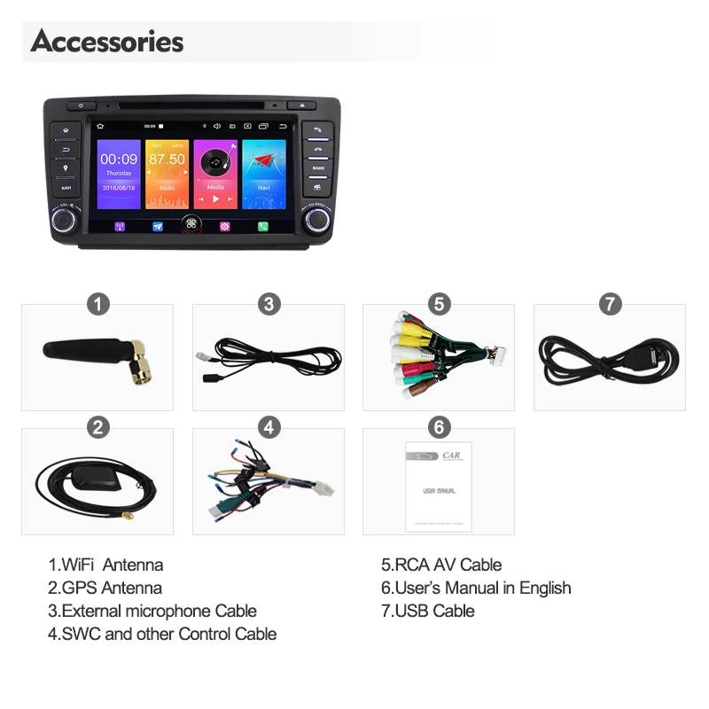 --- >>> Подходит для автомобилей VW/Skoda/Seat с 2005 года по настоящее время с RCD310,RCD315,RCD510,RNS510.Если ваш автомобиль 2016 + Rapid,2015 + Tiguan и другие новые модели после 2016 года, Вам могут понадобиться новые MQB VW Quadlock и CANBUS. Пожалуйста, сообщите нам, мы поможем вам проверить его и отправим вам правильный кабель Quadlock и CANBUS.
