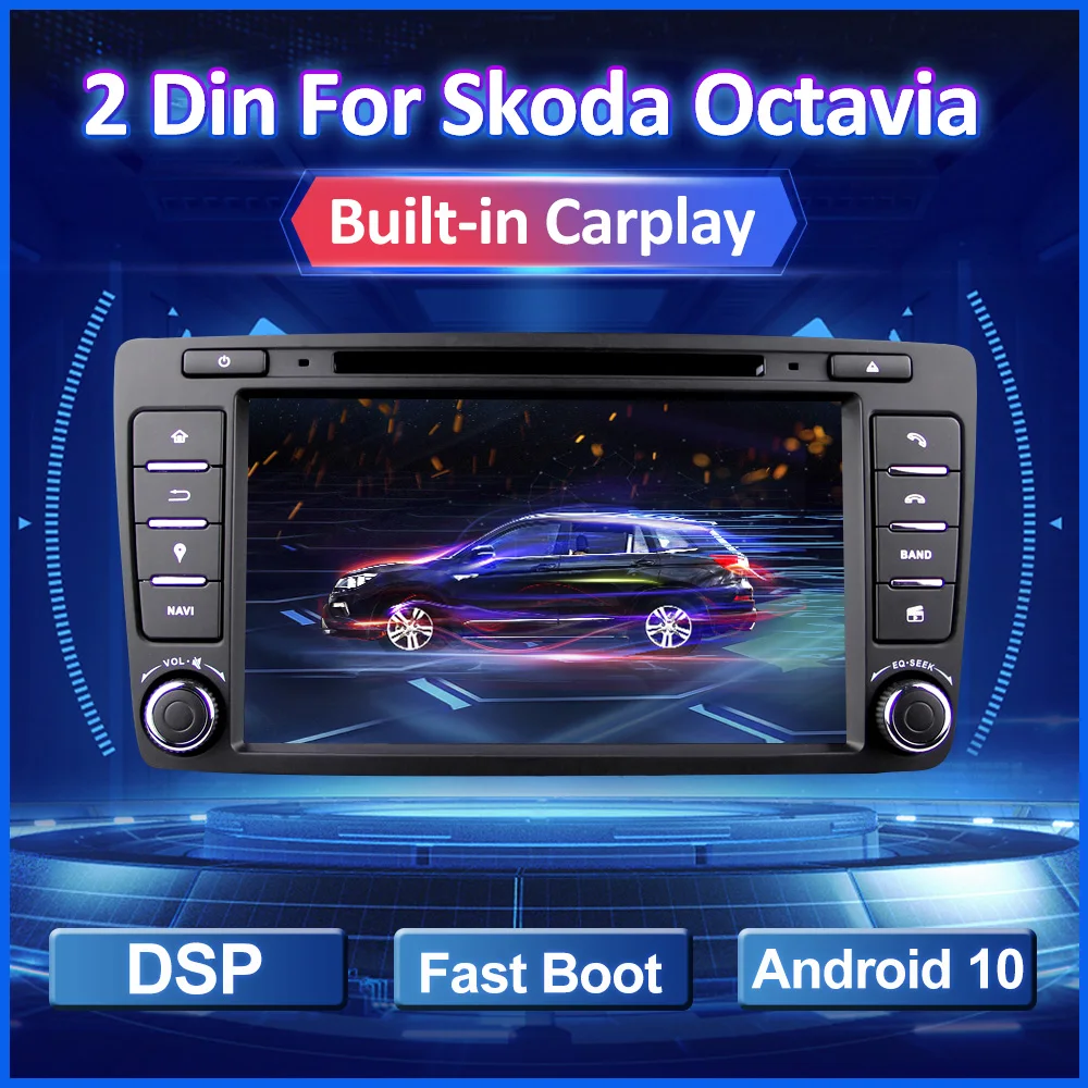 Автомагнитола для Skoda Octavia A7, мультимедийный видеоплеер на Android 10, с 8 дюймовым экраном, GPS-навигацией, USB, типоразмер 2 Din, 2009-2015